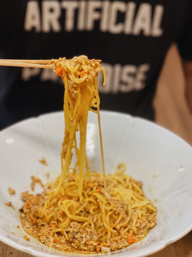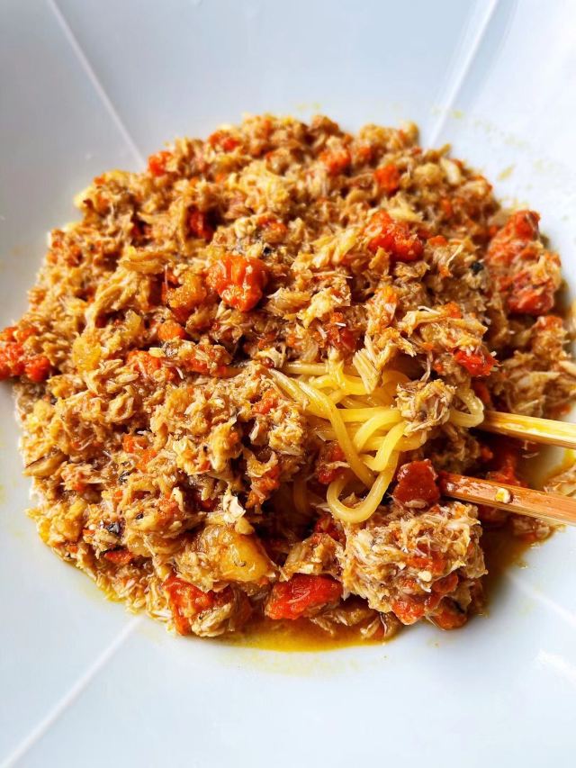 zhuang yoyo初秋的第一顿蟹黄面 避开高峰期,一点半到店内,还算空余,不用排队 找了外滩的店,店面比较大,很阔气,简洁木质装修,店欢清一色穿着店服,麻质衣服显得干净整洁。 已经在上海火了两三年了,这中秋节正是吃蟹的好季节,但是只吃蟹黄还是第一次,一进门便闻到了蟹的腥味,不过对于爱吃蟹我的我来说可以接受 【环境】蟹黄面:360/碗 盘子🥏很大,蟹黄还在上面,面不是很多(可以续面) 味道真的很一般,蟹黄没有处理过,腥味十足,味道没有很惊艳,很一般,期待越高失望越大。 最主要是吃个三四口就很腻,真的很难入口了。吃完就不会二刷了。 还有就是面,很黏,没有劲道,很一般。 店噱头很大,依云水,杨梅汁,无限自助,但是也喝不了多少,顶多一人一瓶的量,感觉是赚到便宜了,其实真的食物🍜真的没有美食可言。 PS:价格和食物不符,初秋可以尝试一下。不建议二刷。