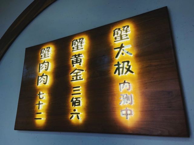 蟹家大院的装修禅意浓浓,极简的白色调和木质家具搭配出传统的韵味。这里的蟹是从阳澄湖打捞上来的,保证新鲜。醇厚蟹香的蟹黄金、鲜嫩爽滑的蟹肉肉是店内的招牌菜肴。
