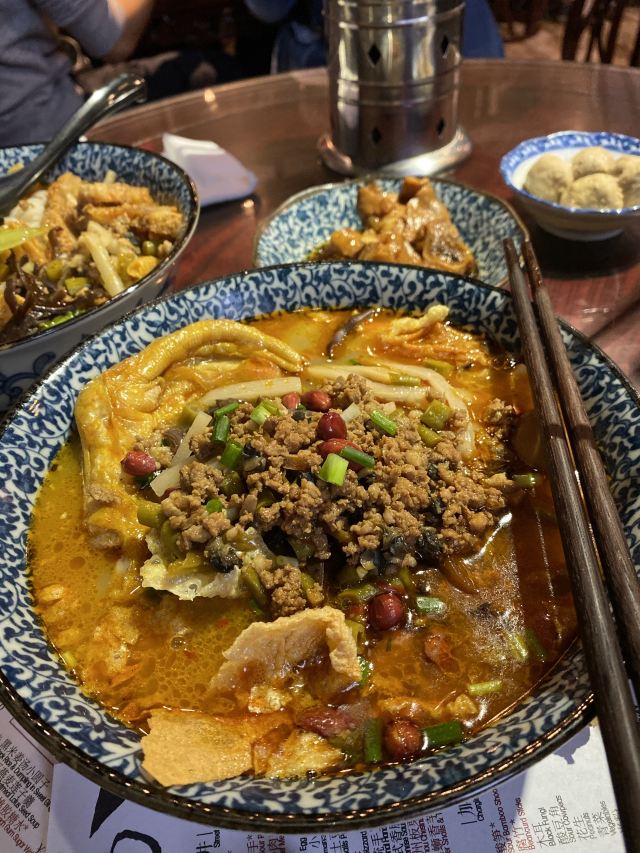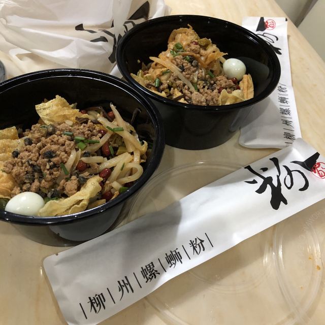 【口味】 一直说这家是很好吃的螺蛳粉,终于来拔草了。 味道确实不错哦,主打菜品|柳州螺蛳粉^必点,好吃。 再配上小菜|脆皮^,一份可以二个人分享。 最后再来一份甜品|木薯糖水^味道也不错。 【环境】 室内环境不大,工作日午餐最好11:30到,不用排队等位。