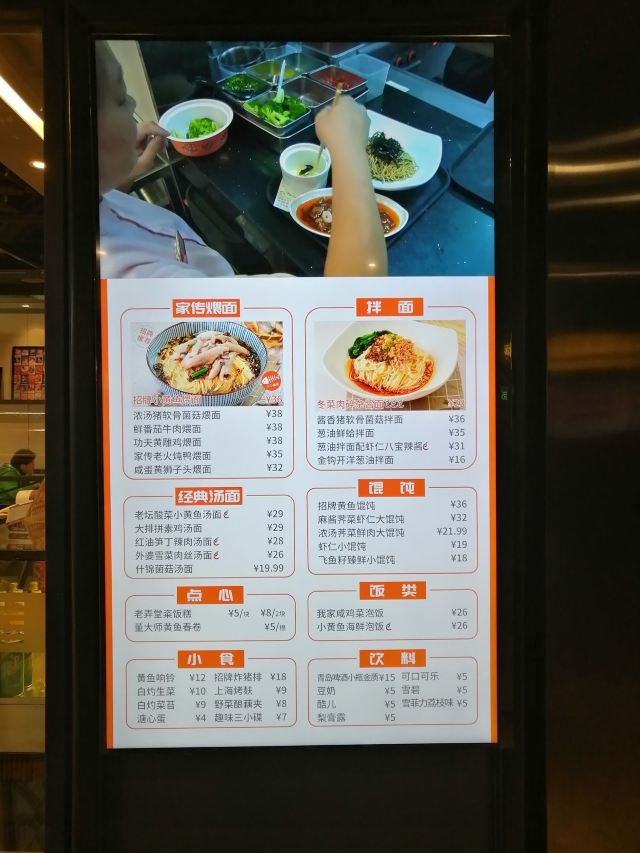企鹅包奶黄,酸辣鸡丁小龙虾拌面,咸蛋黄狮子头煨面,葱烧猪软骨拌面,飞鱼籽臻鲜小馄饨,古法花雕鸡养生面,小龙虾泡饭,什锦菌菇煨面,酱油炒饭,糖心蛋,野生小黄鱼煨面,葱油拌面,黄鱼春卷,老上海菜饭配炸猪排,砂锅黄鱼馄饨,麻酱荠菜虾仁大馄饨,炸猪排配黄牌辣酱油,老火炖鸭煨面,杂粮炒米咸鸡泡饭,续面