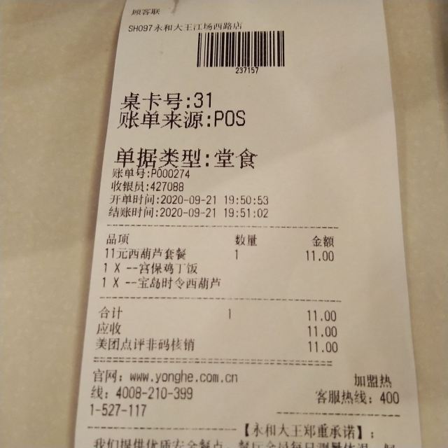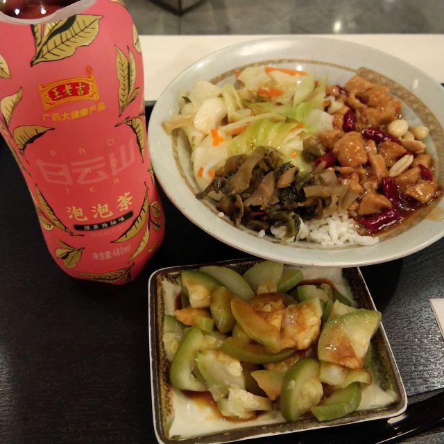 其实吃过晚饭了,就是去好特卖逛一圈买东西又累了而且感觉可以仔补充点食物,看看永和大王近在眼前也没什么人,走起。 要了宫保鸡丁饭+蔬菜,饮料是我好特卖买的,一点也不好喝。。。饭味道还行,但永和大王好像没法自己再加料,找不到醋也找不到辣椒,服务员都忙着弄外卖我就没去添麻烦了。