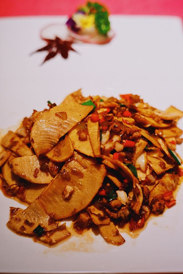 加油干饭呀许爷时令鲜美 人间至味是山珍 工作日中午来找我的静安小伙伴蹭饭,晶品楼上的许爷不排队,不假思索就选它了!红红火火的装修风格倒是很有年味儿🧨没想到许爷除了看家本领的剁椒鱼头,还有超级多的冬日时令鲜美。 冬季是吃笋的好时节,✨清炒鲜冬笋✨选用浏阳大围山鲜冬笋,营养价值很高非常养生,切成薄片的冬笋甘甜鲜嫩一口入魂,是人见人爱的开胃小菜。 ✨锅仔鹿茸菌✨产自河南西峡县的名贵山珍鹿茸,和五花肉片炒在一起,加入大蒜叶慢火煨煮提味增香,肉片吸收精华更加鲜嫩美味,每一口都鲜辣过瘾 ✨椰蓉相思糕✨装在喜气洋洋的首饰盒里,有种大家闺秀的优雅气质,融合红豆、豌豆、绿豆和椰浆,一糕四色层次分明,香甜适口入口即化。 饭后甜品✨养颜桃胶酸奶✨也很优秀,浓醇酸奶甜而不腻奶香四溢,既是美容佳品也是解辣神器哟~