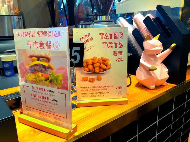 sarah小piu很别致的一家汉堡店,印象中汉堡是西式简餐,过往的客人都是图个方便快捷才到此用餐,但这家汉堡店却独有一番特色。首先,餐厅选用了粉色作为招牌主色调,门口看着很吸引客人眼球。其次,餐厅内标识都是中英文结合,方便周围的外籍客人用餐。再者,餐厅里的设计比较有自己的风格和设计,店内分为两层,一楼点餐,二楼用餐,有点像咖啡馆,很多客人会在这里聊天办公。餐厅内的大黑猫,因为是黑色的躺在黑色沙发上,差点坐下去,不过猫咪很亲人,乖的很,撸了撸,毛发有点粗,但还是很讨人喜欢。最后要说一句的是汉堡包真的做的不错,食料用的好,吃过很多个口味,我最喜欢的是牛油果的那款,其次是菠萝花生酱的一款,味道很特别但很美味。