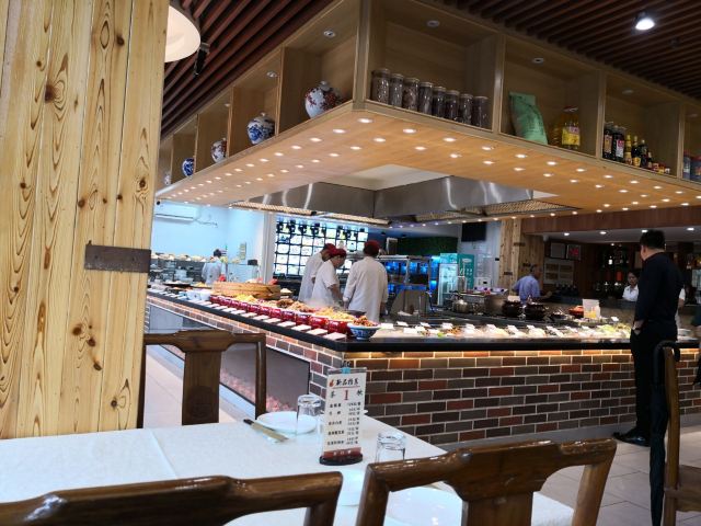 新源路上一家本帮餐厅,浓油赤酱口味还是不错,点菜明档,一目了然。菜入味好吃,就是没有什么活动可以优惠。菜量适中,咸蛋黄锅巴很好吃,脆脆咸咸鲜鲜。干锅花菜入味酥烂,小火慢煨。除了虾饼比较油,糖醋小排口味一般不推荐外,其他都美味。