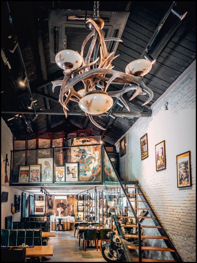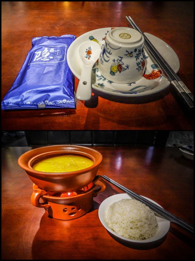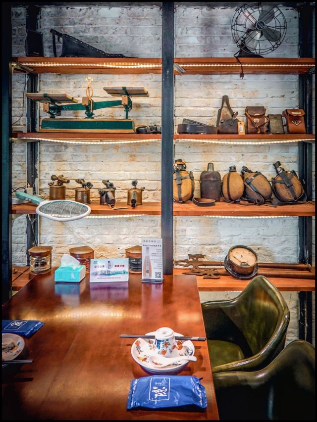 【环境】 走进餐厅就像走进了一个古董收藏家的客厅一样,入眼满满都是充满着历史沧桑感的物件,比如老式摩托车🏍️、不同款式的军用水壶、秤、电风扇、打字机……楼梯口六个不同款的老式收音机📻堆放在一起,上面一盏只在电影里见过的煤油灯……要不是店里还有着菜谱和招牌,真的很难认为这是家餐厅啊,这时候希望店家上菜慢点再慢点,让我细细把这些老物件端详☺️。 【菜品】 因为独自一人来的,所以老板娘推荐了店里的招牌菜“鱼翅菌菇捞饭”(78元)。等了十几分钟的样子,一盅用小砂锅炖的鱼翅菌菇配着一小碗米饭🍚就送上来了,先舀一口汤尝尝味道,mmm……鲜浓无比,拌上饭很快就吃个精光(前面不是说不饿么😂)。五颗星推荐。