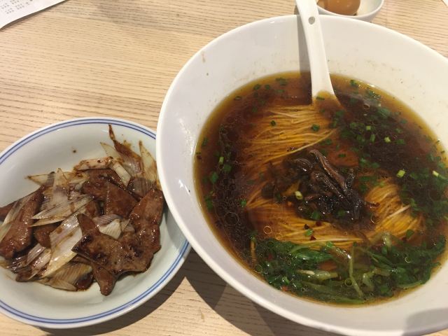 好胃Tube据说这家店之前开在其他地方也挺网红的,现在搬到了天钥桥这里,和小伙伴一起来打卡。 大概看了下价格,感觉和我家附近那家挺火的面店差不多,因为浇头都是和面分开来的,所以相比较之下,这家店浇头看起来真的多好多,看来市区竞争比较大,料有点足,那个肉丝葱油拌面上面的肉丝大概人家其他店可以加点蔬菜炒盘菜了。 和小伙伴要了红汤面,黄鱼面和肉丝葱油拌面分着吃,另外加了些浇头,有我最爱的鳝丝,大肠和猪肝,大肠什么处理的挺干净,可以放心点。另外还有腰花,辣酱和辣肉,笋尖烤肉之类的,但是没有估计好量,到最后实在有点吃不下了,照片可能也不太全,挑重点的发了。 最爱的就是糖心酱蛋,外表觉得挺普通,里面是糖心的,炸猪排也好吃,好久没有吃到炸猪排的我他家的烧卖也值得推荐,是糯米的那种,不过我还是喜欢我们南汇滴鲜肉笋丁烧卖。 面店不大,还有个假二楼,适合一大桌子人来聚餐。