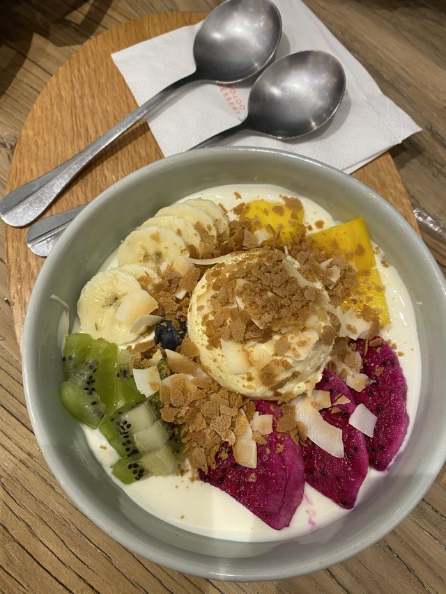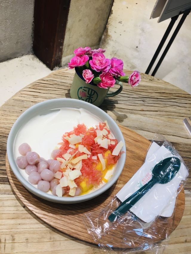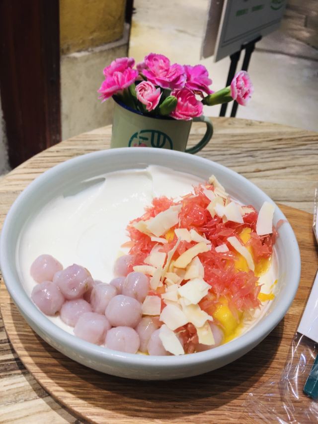 寂寞的西瓜自从,最常光顾的静安大悦城的#寶珠#重装之后,就只能转去它家的其他门店囖,幸好口味还是一如既往~ 🏠环境: 美罗城四楼的这家门店,是有着独立门头的一间店铺,整体环境简洁又清新,真心要比其他挤在地下层的同门小铺子们,好太多太多惹。 🍮口味: 寶珠的出品稳定性还是相当不错哒,几乎没有感觉到不同门店之间的口味差异。 不过,因为看中有莲雾,而第一次尝试的「莲雾凤梨酒酿酸奶」,却hin失望,里面竟然意外加入了芒果。。。 毕竟,莲雾就胜在它天然的清爽味道,现在却偏偏被拿来和重口味的芒果做搭配,显然不怎么合适,说好的凤梨也是从双主角的地位,沦为了几乎丧失存在感的小配角。 无论好坏,晚餐之后加一点点甜,才最圆满😋😋