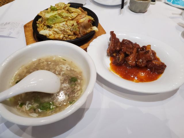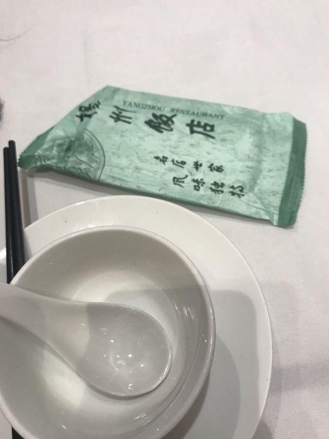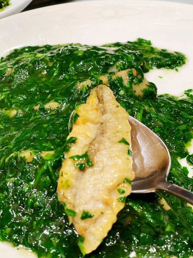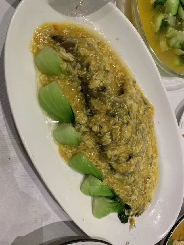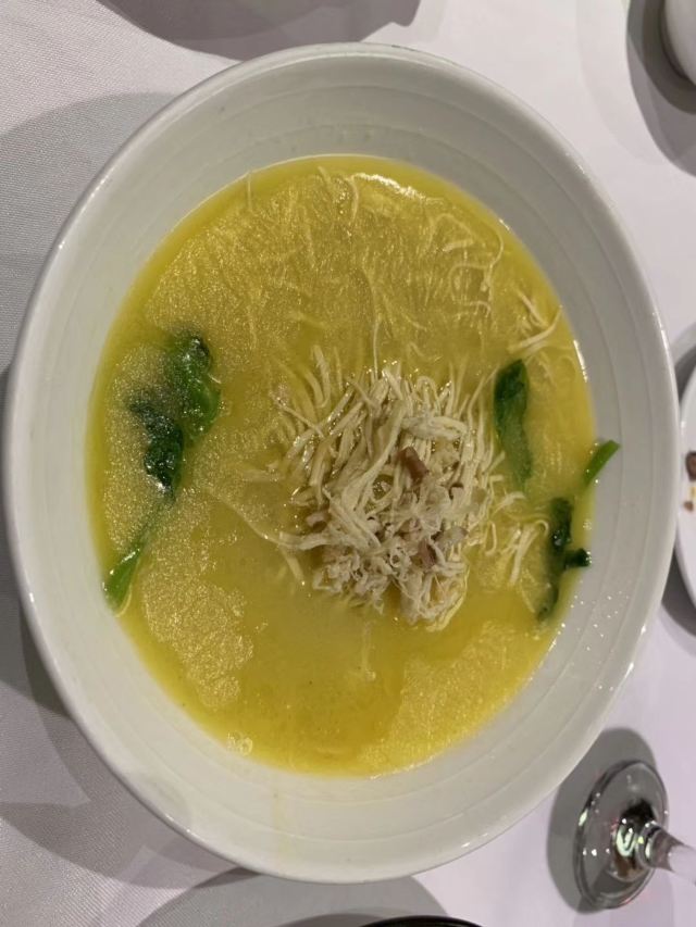 知.识分子先上来的扬州煮干丝甚为养眼,金黄灿灿的汤面上,堆尖着切得细细的干丝和鸡丝,头上还蓬蓬松松地带着一顶干贝丝帽子。边上还飘着根碧绿生青的菜叶,就像夏日瘦西湖上的荷叶。夹上一筷干丝放入嘴中,一咂,失望之心顿生:干丝贫淡无味,丝毫没有上等豆制品应有的豆香,也品不出在高汤里焖煮后所吸收的鲜味。为了对得起那58元一盆的价钱,店家放了不少蟹粉蟹肉。只是季节不对,放了快要十个月的蟹粉,变得有些腥气,身价大跌。 清炖狮子头应该是放了一会儿才端上来的,露在外面的部分已经有点干巴了,只得将狮子头翻个身在汤里泡一泡。比乒乓球大一点的,全然没有正宗扬州狮子头拳头大小的那种气场。狮子头炖得颇为酥烂,滋味上还算可以,也谈不上有什么可圈可点的。呷一口汤,淡淡的鲜味里竟然还能尝出青菜的香气。一两勺白米饭,妥妥的一碗乐胃菜泡饭。 压轴大菜——“维扬软兜”热气腾腾地端了上来。韭黄,大蒜,胡椒还有豆豉的香气扑鼻而来。咸鲜的滋味颇得我意。长鱼切得七七八八,长长短短,只有那么几根能达到挑起来,两头垂下来碰到一起的样子,这可以是“软兜“菜名的由来。 扬州饭店是上海滩淮扬帮的翘楚,由莫家三兄弟在七十年前所创建的”莫家厨房“而来,以“选料讲究,刀工精细,注重火候,原汁原味,甜咸适中,南北皆宜”为本色。自2016年米其林美食榜来到上海,扬州饭店一直在必比登美食推介餐厅榜上有名。 今天的扬州饭店首探只能将将地打上个及格,还是应验了我的那句话“美食在民间“。地道好吃的淮扬菜,还是要到扬州和淮安去。