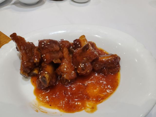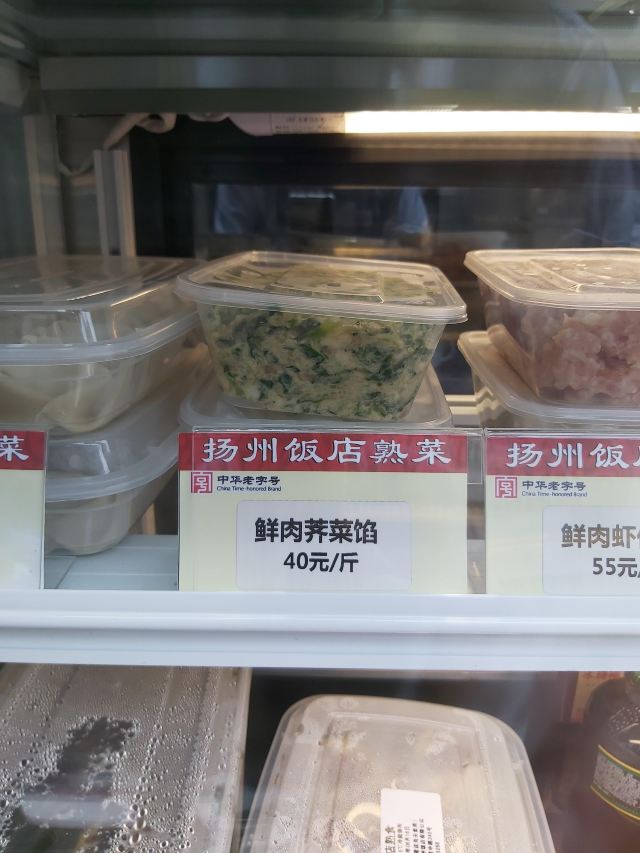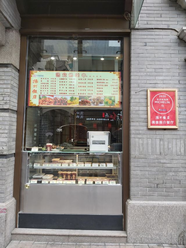 YangZhou Restaurant (HuangPu)福建中路345号的扬州饭店(总店),位于南京东路口,属于步行街商圈,是一个老字号饭店,涉外定点餐厅、上海名特商店,而且,它还是米其林连续三年(18年、19年、20年)的推介餐厅。扬州饭店的三大特色菜品是:干丝、狮子头、肴肉。 2020年6月16日中午,路过扬州饭店时,对其午市堂吃销售情况作了一番随机调研:店家二楼自疫情以来仍未开放,底层(比二层小)已经开放堂吃,我算了一下总共15张4人桌(有一张只能坐2人),坐满充其量只有58人同时进餐,一眼望去,至多只有十多人在就餐。饭店外卖窗口销售的熟食有18样、点心6样,其中半成品3样。我在窗前稍作停留,售货员便热情地介绍、推荐起了店家的货品:酱鸭、盐水鸭都在搞活动,原价45元,现在都卖28元。其实,我知道盐水鸭、酱鸭都不是扬州饭店特色,所以,也就没有搭理。但是,橱窗中陈列的三样半成品我倒是有了点兴趣,我问她你们凭什么一盒半成品馄饨12个要卖22元?附近沧浪亭堂吃10个菜肉馅的大馄饨只卖15元,她说,你觉得贵可以买荠菜肉馅的半成品40元一斤(送馄饨皮)。我便问她,所送的皮子多少分量?几张?她说这是扬州饭店自制的皮子,张数不详,她拿出来我们一起看了一看,初步估算不会少于30张皮子,我当即决定买一斤荠菜肉馅的馄饨馅料。 当日晚餐便是扬州饭店的荠菜肉馄饨,附送的馄饨皮子38张,一盒一斤的馅料包了31个馄饨,够三人份的,这种馄饨的吃法:方便,馅料中的肉馅比例不低,荠菜肉馅又符合上海人吃馄饨的口味。