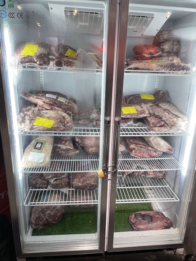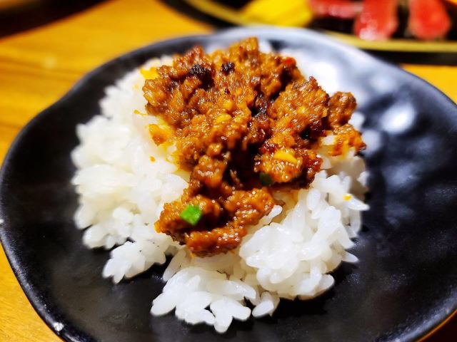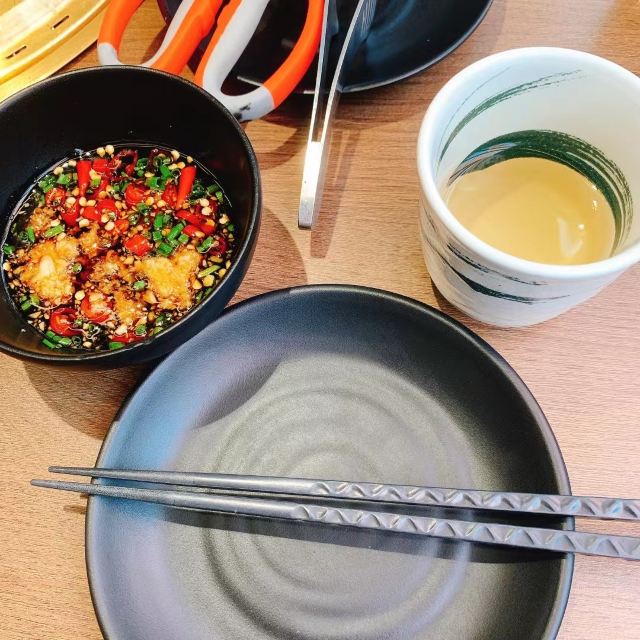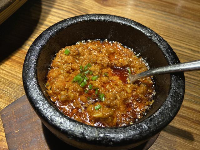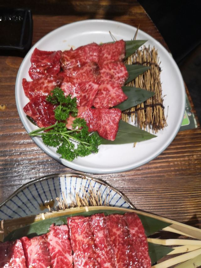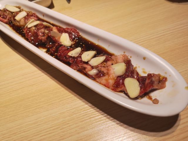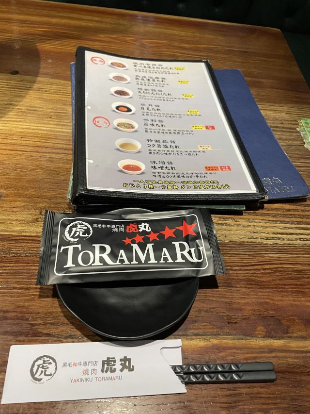 免费牛肉酱,必须打call,店内自制,酱肉香,微肉粒,微微辣,可以卷菜,可以拌米饭,味道赞赞。 虎丸拼盘,第一次过来,自然是点拼盘最合适,横膈膜,牛外脊,牛舌…最爱牛舌。他家服务员,可以帮烤肉,不想自己动手,或是怕掌握不好火候的,完全可以交给他们。 虎丸长条横膈膜,长长一串,满满全是肉,看上去就很有食欲,烤制的时候剪刀处理一下,他家的烤肉蘸汁,也是自制的,多种口味可选,与我而言,自然还是最爱微辣的, 牛小排拉面,日式餐厅,最后打底的一定是他家的汤面,微辣,香浓,Q弹的拉面,一碗下肚,整个人都活络起来。