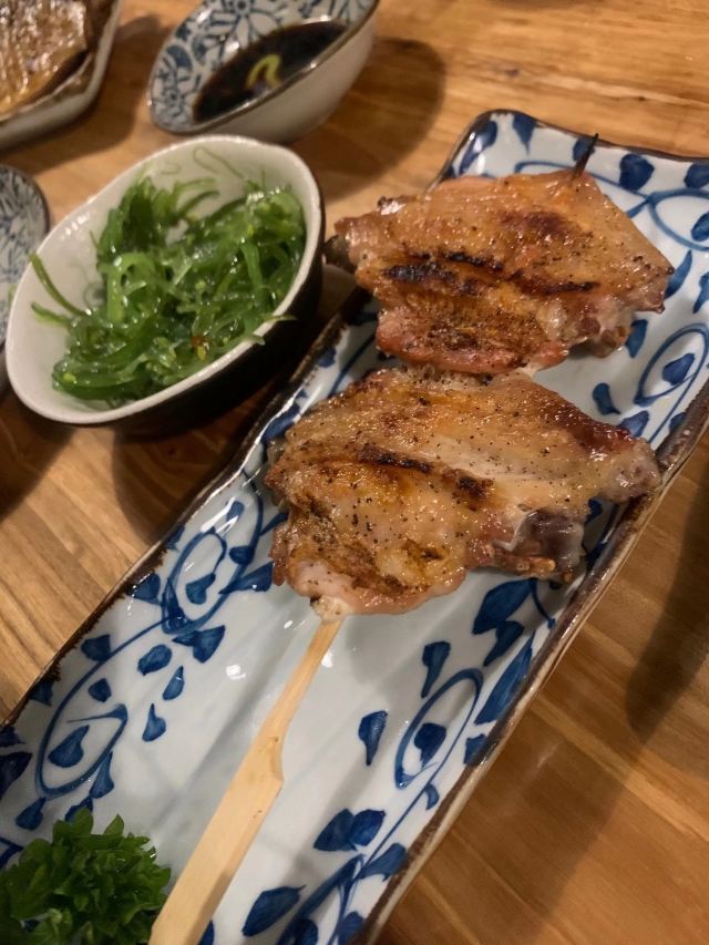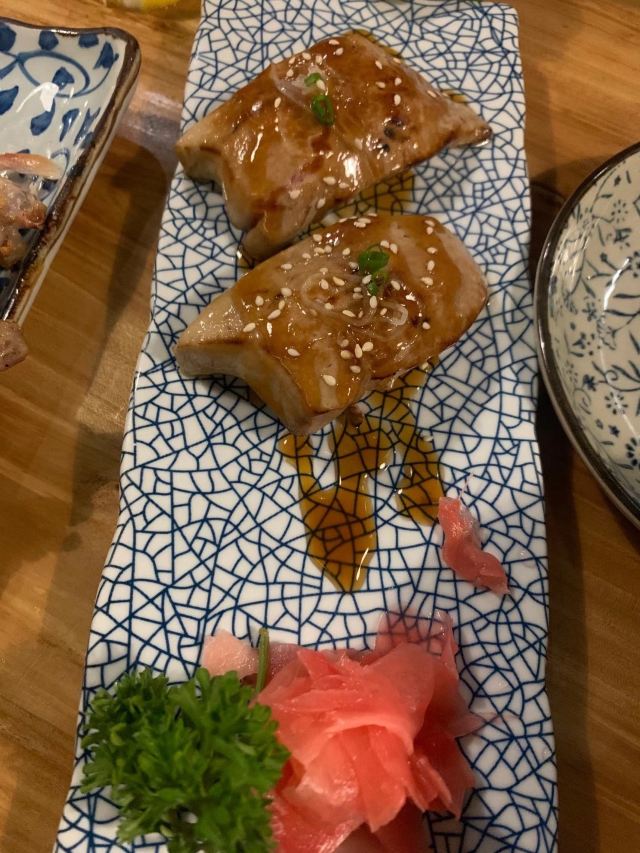 梅子茶泡饭,刺身拼盘,烤秋刀鱼,鹅肝牛小排,香菇,烤芝士年糕,黄油土豆泥,黑蒜烤生蚝,烤鸡肉,中华海草,鹅肝寿司,烤牛舌,牛肉,三文鱼,鳗鱼饭,烤鸡皮,芝士豆腐,炸鸡块,鳗鱼寿司,芥末章鱼