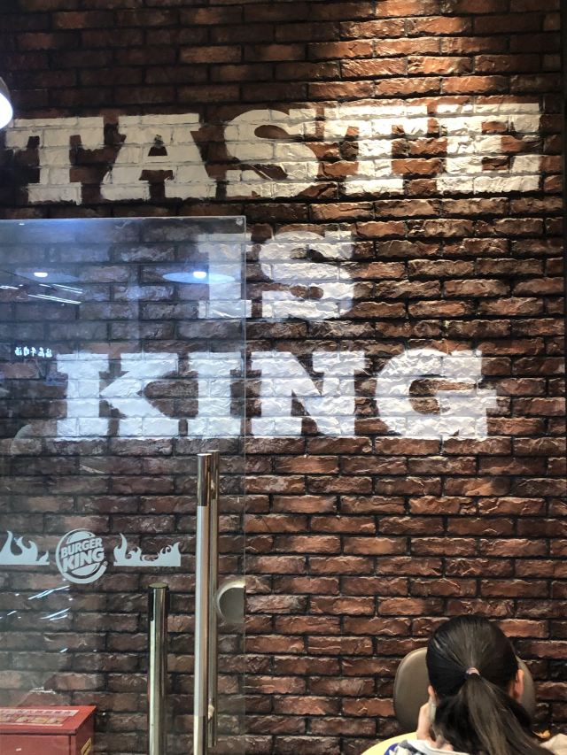 连锁经营的汉堡王,统一的味道,统一的价格。在大型商场都可以看到汉堡王的踪迹。 不瘟不火几十年屹立不倒,一直在夹板中求生存。能在竞争激烈的环境里生存下来都是强者。 路过虹桥天地,啃一个汉堡王的汉堡吧,也算是对他坚守的支持吧