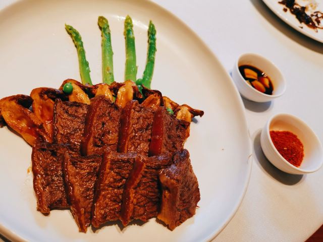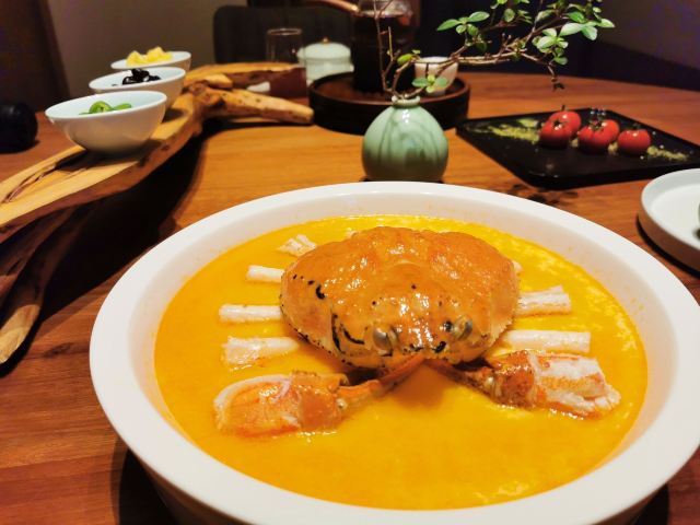 eastplay做了功课,将家庭聚餐预定在这里,聚餐结束后得到了全家老小一致好评,不愧为2019必吃餐厅。 [环境]餐厅的环境比较佛系和雅致,各种布置细节都很走心,有让人瞬间平和的魔力。 包房宽敞,有独立卫生间和服务人员,特别适合有老人家的聚餐,不得不推荐。 茶品点了|大红袍^,此款茶品正宗够味,香气好,口感极佳,很推荐。 菜品不仅颜值高,而且味道也不错。 |慢煮白扣澳洲牛肉^很好吃,店家选的澳洲牛肉的肉质很佳,经过慢煮烹饪后牛肉酥嫩,再加上松茸,简直是完美组合。 主食|葱烧辽参组合^,有机辽参+铁棍山药+西兰花+面,然后和酱汁拌一起,海鲜、蔬菜、碳水不仅都有自己的味道,也互相融合的很好,是道100分主食。 餐厅整体风格主打健康,食材菜品也会根据季节做相应调整。