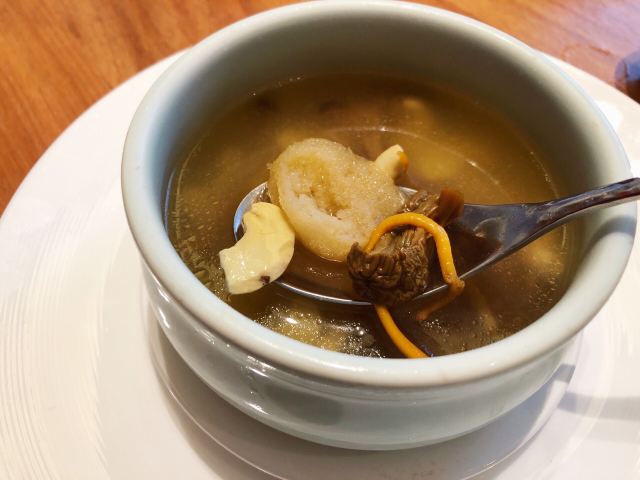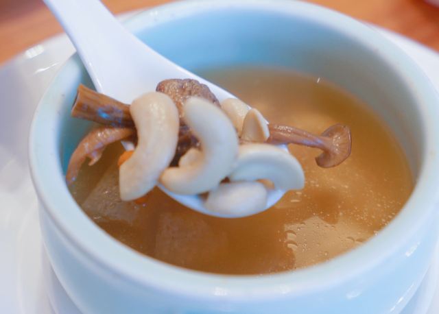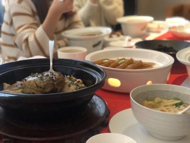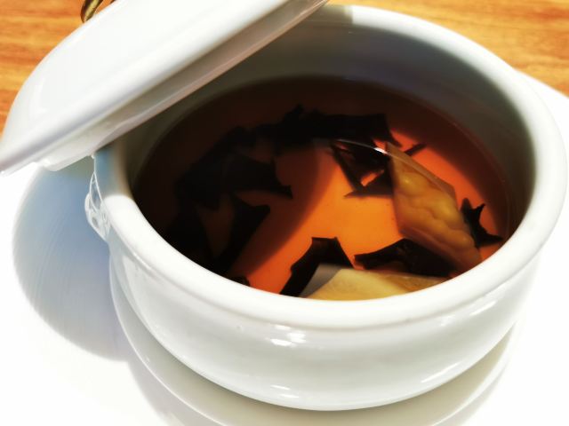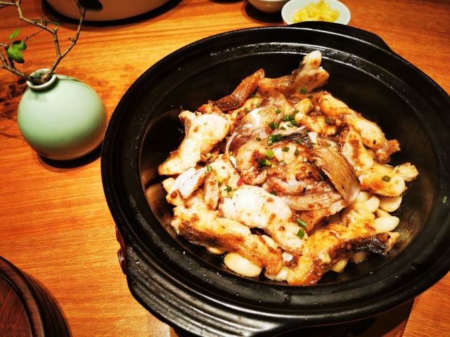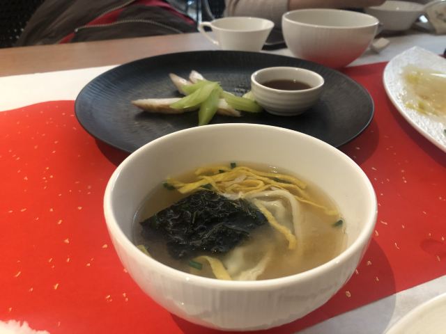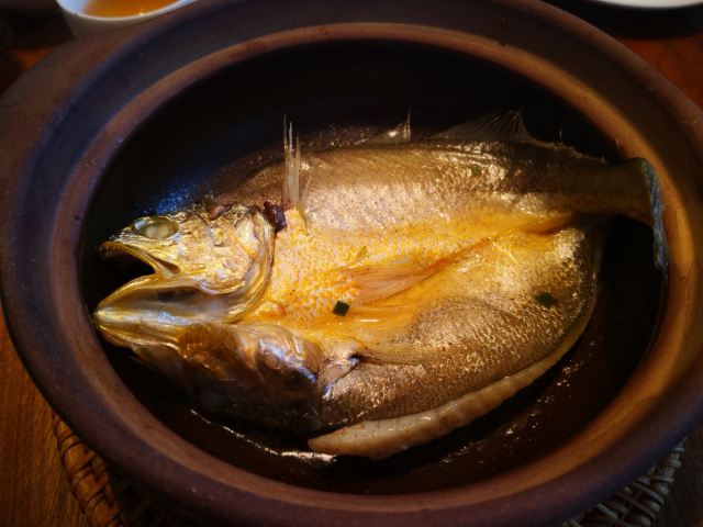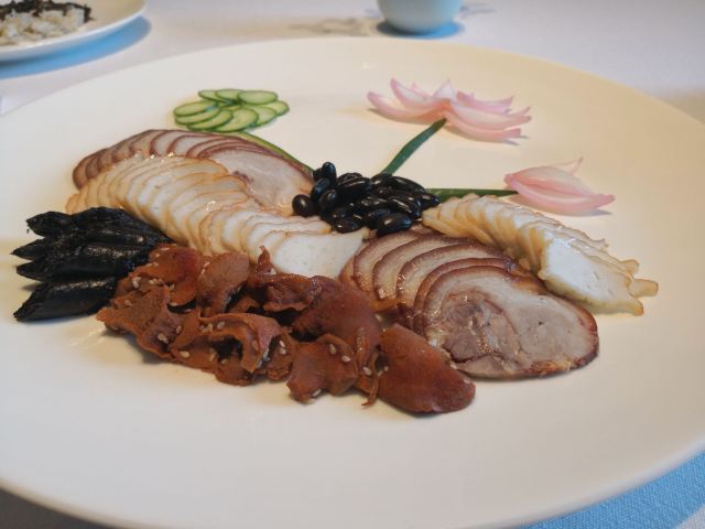 ma****ly老爸过生日,纠结了好久要选在哪家请他吃饭,朋友推荐了这家膳道,据说即美味又养生。 店铺里的装修,看起来给人一种高山流水的闲适情趣,清淡却让人舒服。 就餐前,先奉上一碗黄色的玉米糊,搭配四色的餐前冷盘,都说吃五色好气色,膳道的养生体验再每一道餐食里。其实这道冷盘就做的很有特色,寿司里的米是用红菜头之浸过的、小小的鹌鹑蛋里面竟然是溏心的。 卤水拼盘,里面有一种叫鱼耳的菌类,比木耳厚,口感却依然脆嫩;最为配菜的洋葱,事先也腌制过,口感变得鲜甜了。 油盐水焗东海野生黄鱼,一人一位的大黄鱼,端上来一掀开锅盖,就闻到一股鲜咸的香味。鱼肉自然是细软鲜嫩的,而鱼骨也柔糯到可以直接吃掉了。 葱烧有机辽参,以前吃过一些辽参的料理,一整只辽参拿来料理,很有可能作料的味道只附着在辽参的表面,里面却是无味的。而这道菜里的辽参,从里到外都是香嫩入味的,熬煮出的卤汁,同样是鲜美的,于是搭配的铁棍山药、卷面、绿椰菜,甚至是大葱段也没放过,都拿来蘸着卤汁吃掉了。 每位还配了一份鲜石斛养生功夫汤,清口的同时又滋补。 菜品都是一道道有序的上桌,每上一道菜,店员都会介绍菜式里的养生元素。