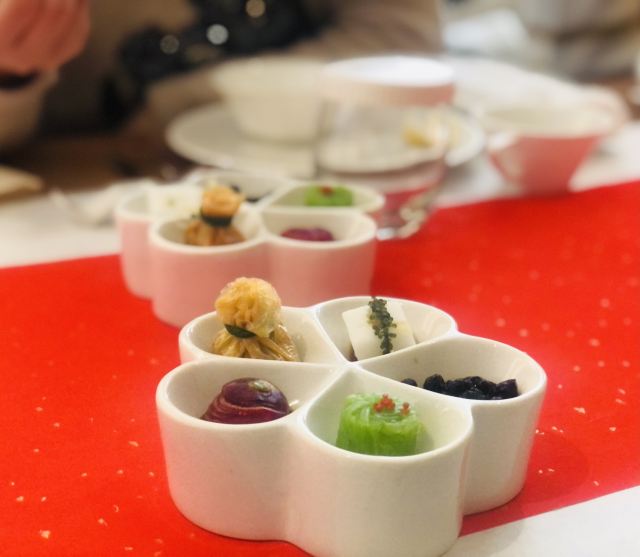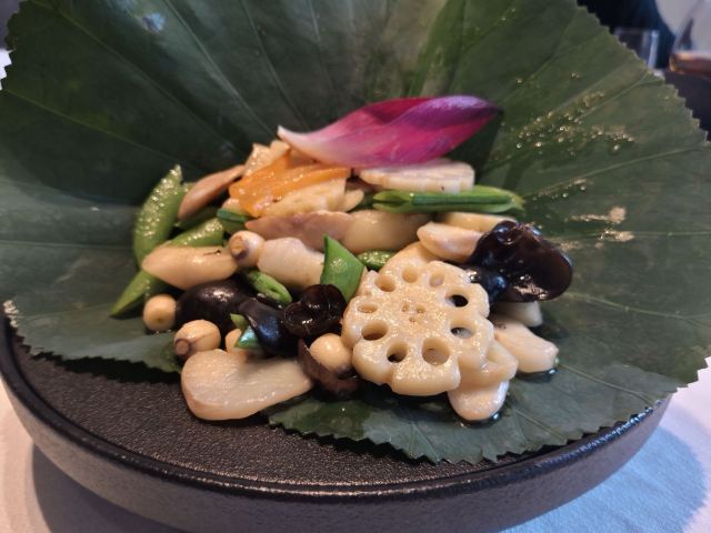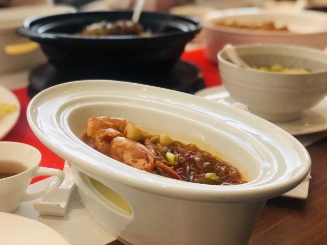 水果,港式蒸小笋鱼,芥味牡丹虾球,松叶蟹俩吃,冷菜拼盘,七味盐煎莲藕饼,宫爆虾球,春香柑,宁波雪菜蒸中黄鱼,松茸养生功夫汤配美点,新西兰龙虾煨芥兰,雨花石盐烤红膏蟹,百花焗沙地红薯,熏鱼,杏仁烧汁雪龙牛肉,五色润五肺,粤式雪龙牛肉,红曲米酒酿小圆子,葱烧有机辽参煨山药,火焰海盐焗荷香银鳕鱼,新西兰小羊排,松叶蟹二吃,竹碳鸡纵菌,红豆杉养生功夫汤配美点