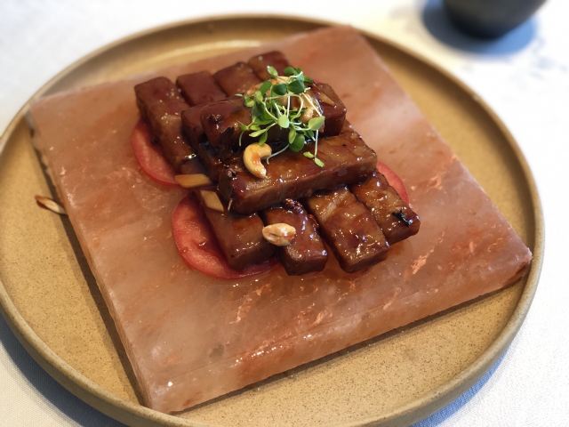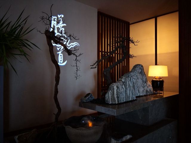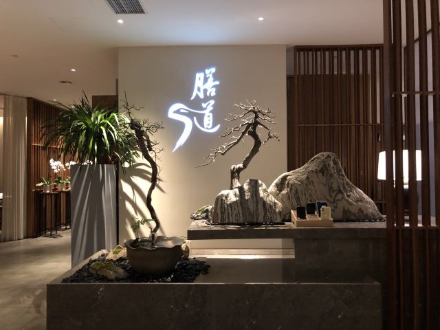 ro****rs和长辈吃饭,精心挑选了的店,相比较一般的本帮菜,这样的养生私房菜感觉更加好一点。环境很有禅意,膳食养生,调养之道,这就是膳道。 提前预定,包间私密性很好,有专人服务很到位,菜单由厨房配好,有忌口可以提前说,这样感觉也挺省心的,上菜的时候也会有惊喜。 颇有些融合的味道,每道会介绍食材做法,对养生的好处,受益颇多,一道前菜就可以看出菜品的精致,饮料是特制的酵素也很好喝哦。 印象很深的是一道火焰海盐焗芋头,在海盐石上点火焗烤,荔浦芋头的口感香软入味,比吃肉还好吃。 还有招牌的杏仁烧汁雪花牛肉,雪花牛肉的肉质很好,肥瘦相见口感很棒,烧汁也是符合本帮的偏甜口味,很喜欢的味道。