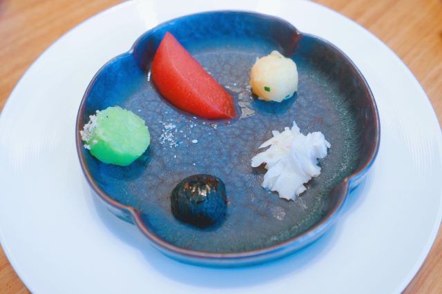 D了个Y许久未吃漂亮饭了 乘着黄山回来 路过虹桥 特地来膳道虹桥西郊店打个卡 这家店在我的小本本里也是躺了许久了 餐厅位于九华福缘湾的1号楼5层 环境没的说 属于中式美学的上乘之作 中式的茶道 中式的家具 融合简约的设计 柔和的灯光 自然流露出一种中式美学的高级感 前台一侧布放着很多茶具茶品 想来店家也应该是一个喜茶之人 膳道的餐崇尚大道至简 没有太过烦复的炫技 就是把基础的做好 但是是好看的 精致的 好吃的 吃完感觉是舒服的 另外 服务也是极好的 小姐姐很客气且热情 送餐 换碟 加水 动作麻利 餐前会询问忌口 上菜会简单介绍 声音温柔 语气平和 听着也舒服 总的来说是一次不错的种草体验