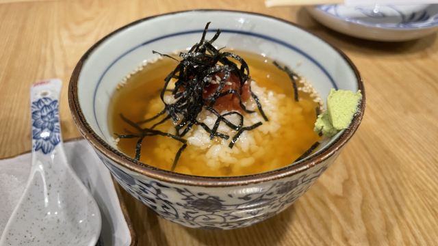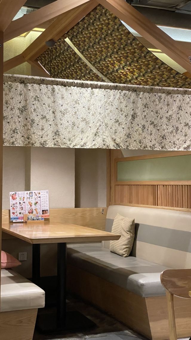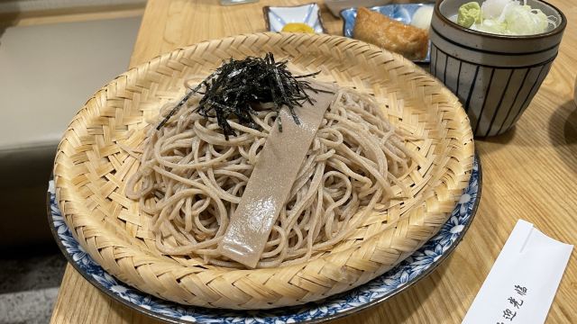 Ruby.Jin很喜欢吃冷荞麦面的我,竟然不知道公司附近有一家挺有名的荞麦面店! 周日晚饭时间,店里也没有坐满人,可能和疫情有关,到处都检查很严格,本来还以为要排队的。 服务很一般,没有主观能动性。店里很多日本人,也有其他欧美人。服务员貌似会听会讲一些日语。 点了冷荞麦面、豆腐皮饭团、关东煮3样、茶泡饭、抹茶冰激凌、可尔必思,总花费184元,毛巾收费1元,不需要的话,千万不要打开。 第一轮上菜还挺快的。关东煮、茶泡饭、豆腐皮饭团、冷荞麦面一下子都上来了。 关东煮3样的价格是25元,还有5样、8样之类的,不用纠结选什么,因为你没的选。然后,我果然还是比较喜欢便利店的关东煮,可能个人就是喜欢煮得时间比较久的那种。25元3样的关东煮,上来的没有一个是荤的,哈哈!还好有我喜欢的萝卜,就是有点硬。汤的味道不错,小朋友喜欢,比较清淡,不会很甜很咸很鲜。 吃完发现最喜欢的是豆腐皮饭团和茶泡饭。一份豆腐皮包饭有2个,小朋友吃了一个不够,后来又叫了一份。真的是非常好吃。饭里貌似放了油条颗粒,一口咬在嘴里,一种神奇的空气感。小朋友不喜欢茶泡饭,但是米饭星人我就好这一口!有四种口味可以选,我也不知道有啥区别,选了梅子味的没有后悔。呼噜呼噜一碗茶泡饭下去,我竟然还有胃口继续吃荞麦面。问服务员多要了一份汤汁给小朋友,但是小朋友说面的表面有沙沙的口感,她不是很喜欢。所以差不多一份面都是我吃的。我一直去纹兵卫吃冷荞麦面的,相对来说,感觉万蔵的面硬一点,个人应该还是比较喜欢纹兵卫的。最后上的抹茶冰激凌浸泡在红豆沙中,红豆沙很甜,但抹茶是微苦的,所以中和之后味道就比较奇妙了,还不错,里面还有几个小圆子。 店里有小隔间可以坐6个人,边上2人桌,中间有4人桌,还有吧台。环境还是比较舒适的。 以后可以去试试午市套餐,不用去比较远的纹兵卫了,真好!