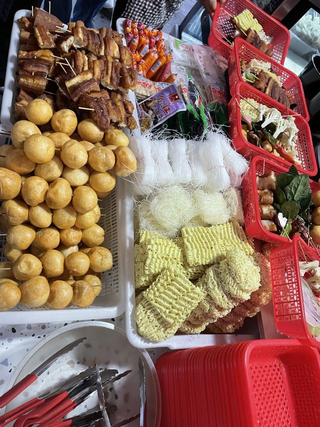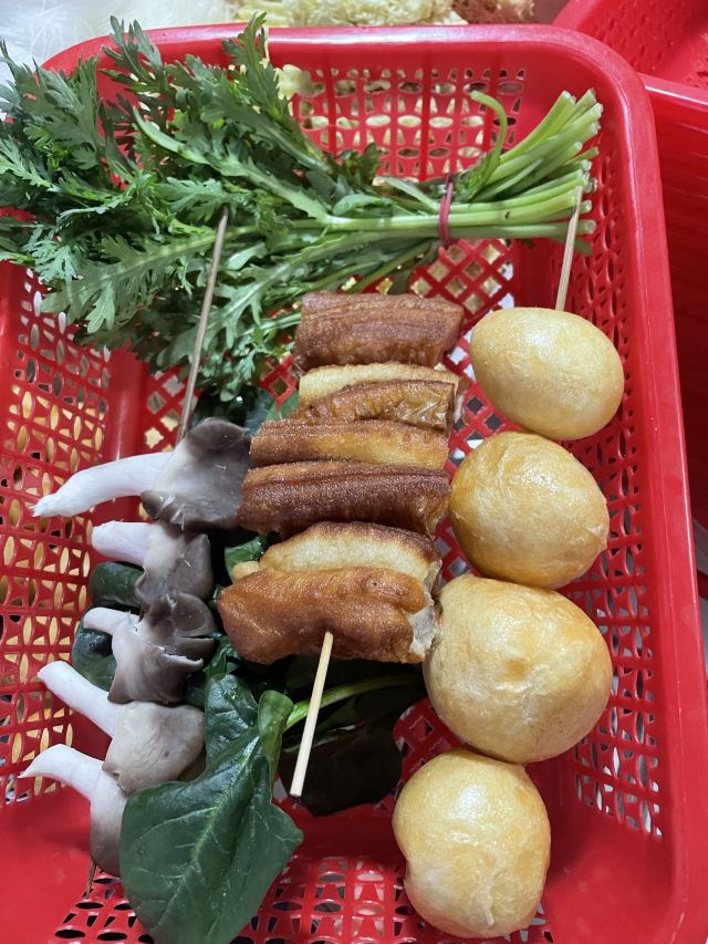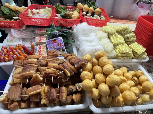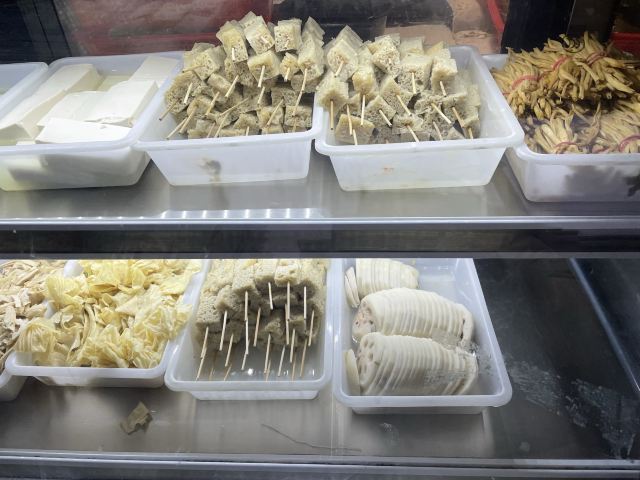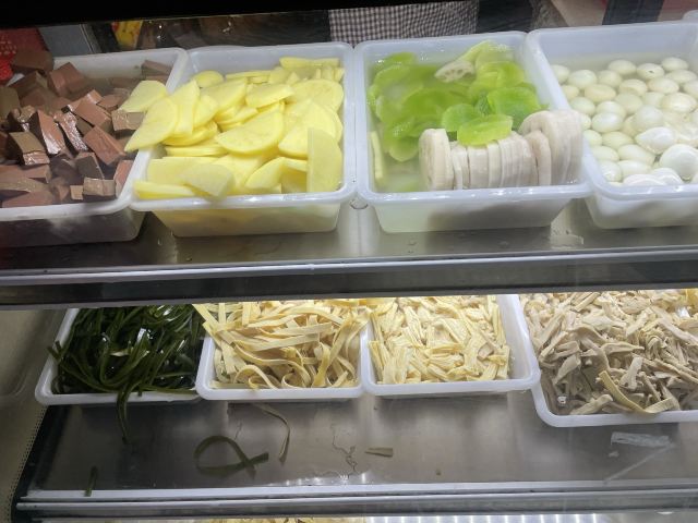 兰花干,水笋,芋头粉丝,油条,豆腐,掌中宝,鹌鹑蛋,鸭肠,鸭血,海带