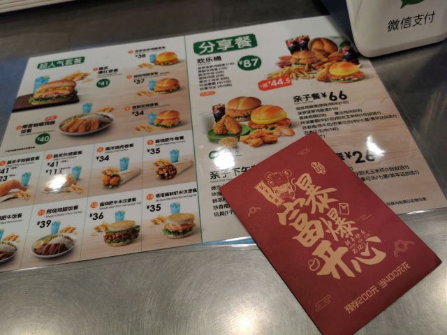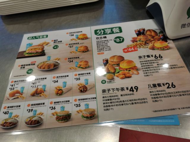 手枪鸡腿,脆皮炸鸡,香辣鸡翅(一对),油条薯饼餐,辣味超级鸡腿堡餐,脆皮炸鸡蔬菜沙拉餐,脆皮手枪腿,魔法大鸡块,照烧饭,巧克力卡仕达鲷,爆浆爆福可乐餐,香辣鸡翅,菠萝鸡腿堡,德意鸡腿桶,咔滋薯霸(中),椰香咖喱鸡腿饭,暖心下午茶A,双鸡汉堡,甘梅地瓜薯条,爆浆爆福堡