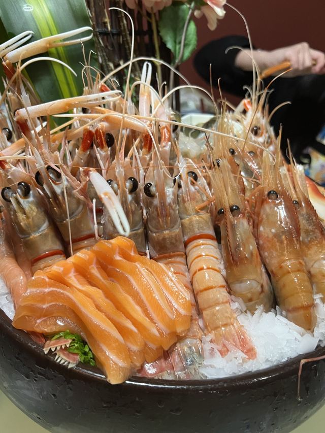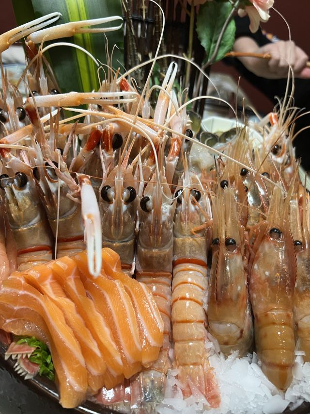 生意非常好,周末的时候居然要排队,而且要人齐了才能进去,需要定位子,这么大的场地,居然是全满的?虽然在地下一层,但是还做了一个隔层,相当于两层楼,二楼基本上是包房,去的时候不仅是里面全部客满,而且等待区人也是很多,看上去生意真的很好,这家店虽然价格贵,但是关键是不漏单。品种也比较齐全,鳌虾还是其他的东西都是应有尽有,现在看起来应该品质比其它放题要好。