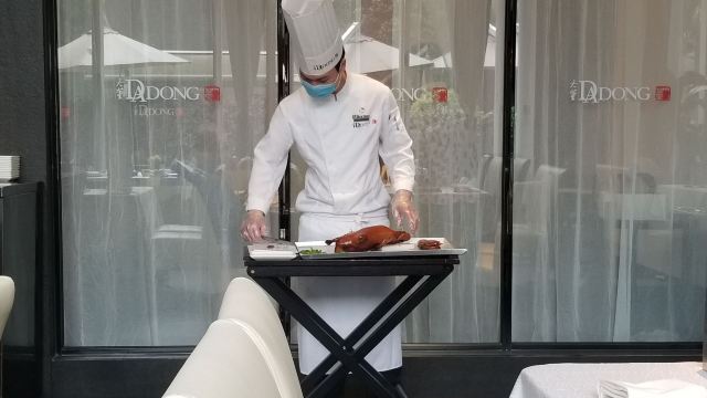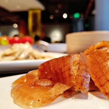 国金这家感觉还是非常高大上的 而且view超级赞. 来这里片皮鸭是必点的 大师傅推着小车 当场切片,也是很有感觉的 味道那是一级棒。酱料非常正点。鴨肉肥而不腻。其它菜式做的也很精致哦.