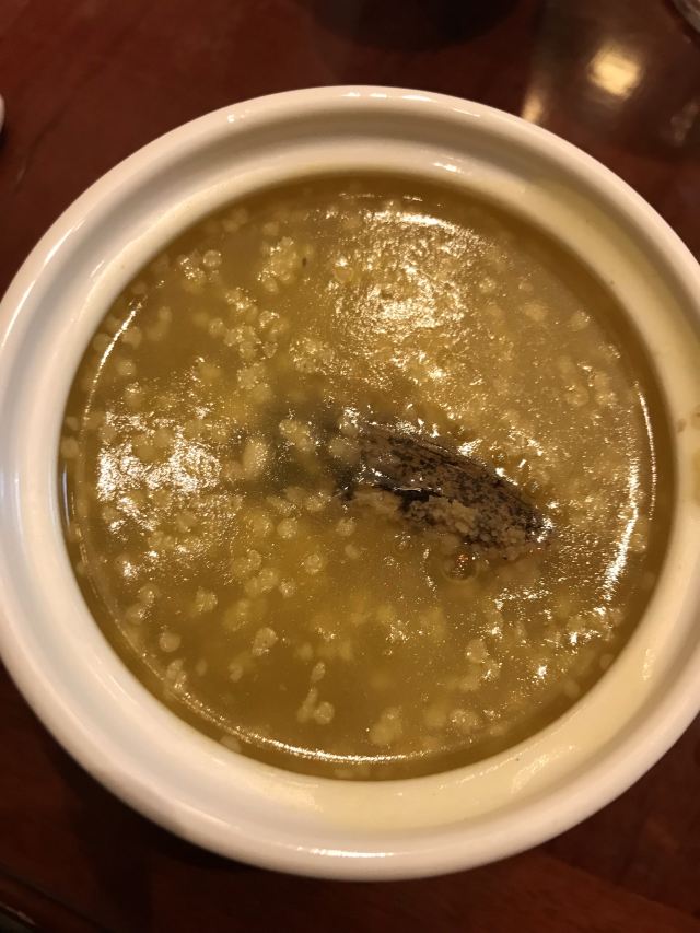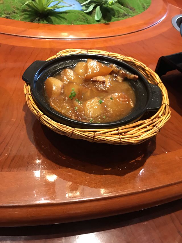 工作日的中午,去嘉定看朋友,朋友选择了这家餐厅招待大家。 餐厅布置浓浓的江南园林风格,菜品说是农家菜,实际是融合菜,大江南北的菜都有。 最有特色的是他家的肉汁萝卜,萝卜入口即化,酥软可口,而且非常入味,好吃到爆。 他家的现蘑的豆浆、菜饭都有小时候的味道。