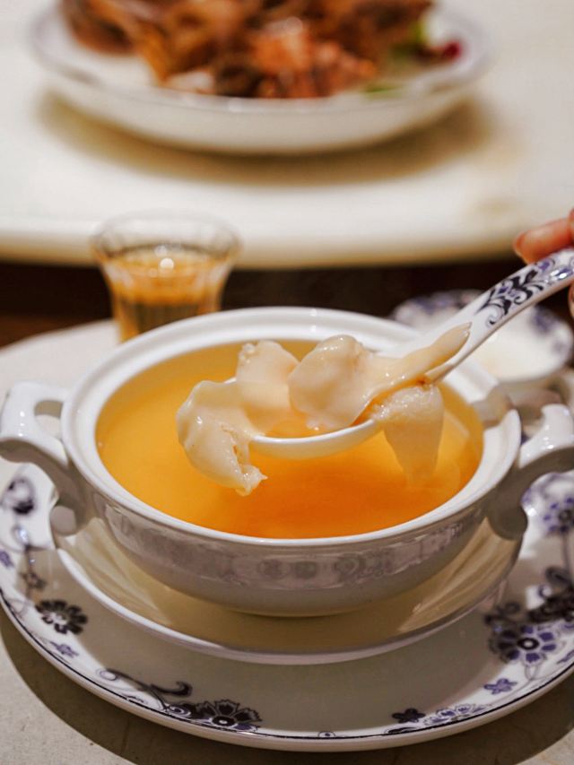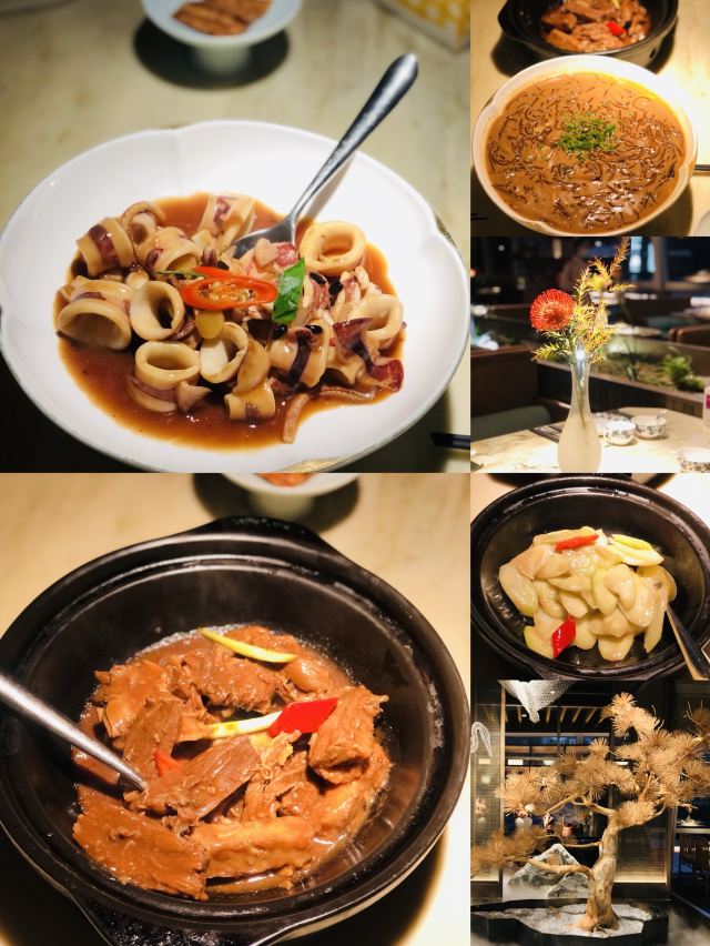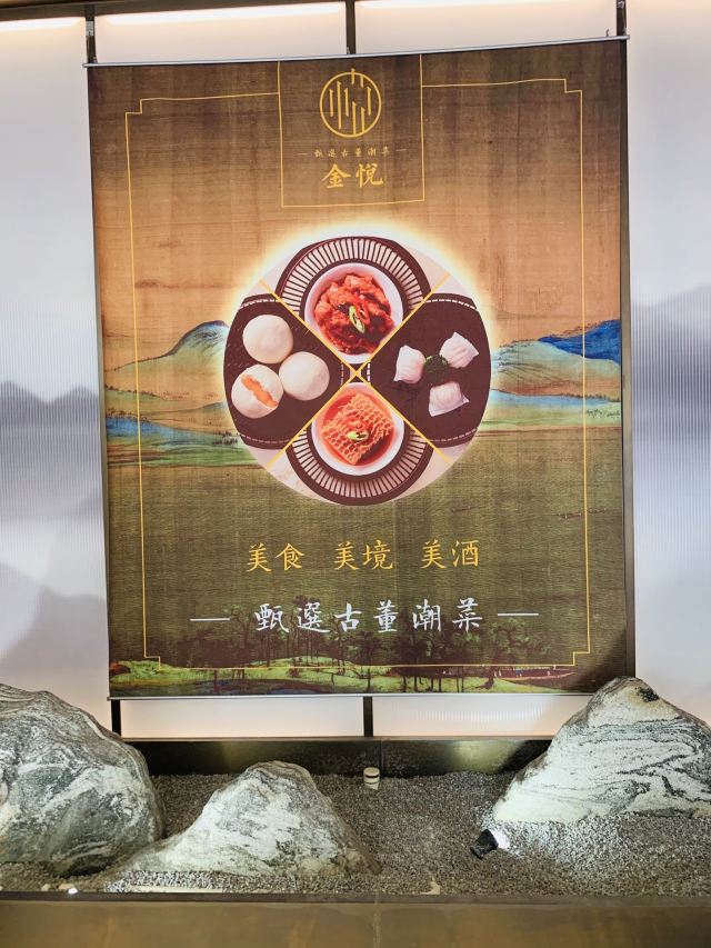 来🌟金悦🌟品味古董潮菜,古色古香的典雅装修彰显宋宴美学,步入其中仿佛一秒穿越到山水画卷。 🦩大堂人气旺盛却不喧哗,双舞庭中花落处,数声池上月明时,一树一鹤一世界,妙处难与君说。 🪴书香气息的雅致包厢,适合家庭聚餐和商务宴请,满满高级感的团扇吊灯,据称还在米兰获奖,营造出泼墨山水画的意境。 首屈一指的🦞金奖焗龙虾🦞,活灵活现的霸气摆盘轻佻你的味蕾,搭配爽滑Q弹的伊面,一口虾肉一口面条,真是两全其美。 慢火熬煮的🥘南澳龙虾泡饭🥘,不只有龙虾味更有龙虾肉,第一次在泡饭里捞起一整块龙虾,硕大饱满的虾肉鲜美入味,吃完一碗还想再来一碗。 潮州卤水是重头戏,千金一勺卤,卤水汁是精华,卤角螺和卤水老鹅头值得细品。 兰州当地🍥九年百合🍥,有蔬菜届人参之美誉,肉质饱满浑厚,入口清爽脆甜。 🍲古法鸡汤西施舌🍲无疑是养生人士的最爱,汤清而不失鲜美,一口入魂滋润身心。 金黄诱人的🥠脆炸普宁豆腐🥠,蘸上薄荷盐水咸鲜脆嫩,还有潮州特色披萨🦪铁镬脆皮蚝仔煎🦪,满满鲜味蚝满足~ 饭后甜品🥭杨枝甘露🥭,丰满红柚粒伴随浓郁果香,每一口都沁人心脾,撒上酸梅粉的🍈甘草水果🍈有助消食哟~ 除了清香宜人的凤凰单纵,还有纯天然的古法米酿,浓醇米香适合养胃,搭配民间小食茶点,共享茶余饭后的惬意“食”光🍵