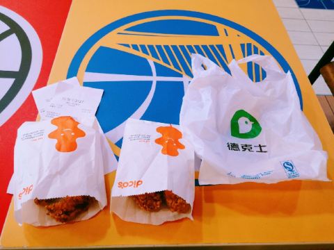 德克士是中国西式快餐特许加盟第一品牌,最大的加盟连锁舒食快餐企业,德克士炸鸡起源于美国南部的德克萨斯州,1994年出现在中国成都。德克士最有名的就是脆皮炸鸡,在中国快餐界其中最有名的三巨头:除了麦当劳、肯德基、还有就是德克士! [环境]宜山路地铁下来肚子有些饿,看到德克士想想进去吃点垫垫肚子吧。 亮橘色的店堂和绿植看起来整洁又有活力,背景墙和桌面都是篮球元素,这是德克士宣布与NBA中国以及NBA中国赛的官方市场合作伙伴后每个店铺都有的共性。 [服务]进入店堂后直接去点餐区点单,服务生规范服务,能迅速的下单并把制作完成的餐食包装后放入餐盘交到食客手中。 |香辣鸡翅^这里招牌是脆皮炸鸡,不过我点了2对香辣鸡翅,闻着诱人的香味,外皮金黄酥脆,鸡翅鲜嫩多汁味道真不错。