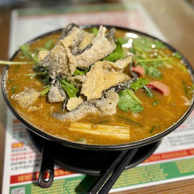 招牌炸酱小锅米线,肥牛,鱼皮,浓汤鱼汁小锅米线,午餐肉,蟹肉棒,冻柠茶,肥肠,鱼丸,生菜