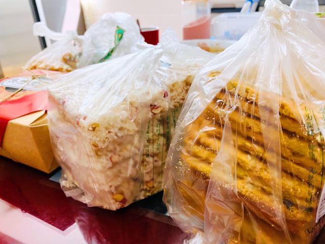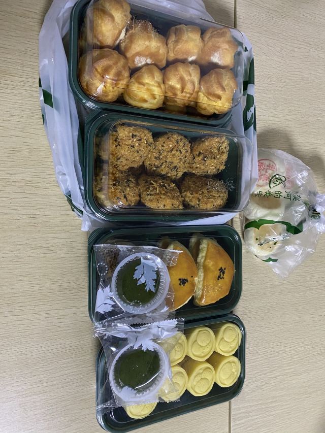 乌圆小丸子怀着忐忑的心情点了外卖, 看之前的点评上外卖酥类都已经碎掉了, 自己去购买的时候也发生了这个问题, 由于动作不是很轻盈, 所以回家咸桃酥和千层酥已经粉粉碎了, 可在此时对于美食的执念, 实在忍不住就下单了,虽然价钱比店里贵,但是觉得还是非常值的。 毕竟在疫情期间不用出门 在小区门口就能够拿到心仪的美食, 比店里每个品种贵几块钱加外送费全城送 这些都是值得的。 可惜今天没有蛋黄乳酪留点念想下次继续。 #肉松小贝# 还不错 随便吃吃 不要和鲍比 大家都是海苔肉松+蛋糕+沙拉酱 #千层麻花# 层层酥脆 没有油耗味 幸福 #小米酥# 蛮好吃的 小时候味道 没有惊艳 就是怀旧 #咸桃酥# 喜欢的味道 咸咸甜甜 #玫瑰豆沙蛋黄酥# 怎么那么好吃 美心豆沙月饼 奇华豆沙蛋黄酥 平价替代找到