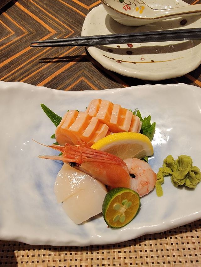 西京烧银鳕鱼,三文鱼腩刺身,大虾什锦天妇罗,芒果炸虾卷,铁板西冷,翡翠鹅肝寿司,综合刺身三品,铁板带子,自家制鳗鱼配和牛饭定食,甜虾海胆三文鱼籽盖饭定食,烤日式川老芋,牡丹虾,天妇罗,金枪鱼寿司,烤牛舌,龙虾刺身,海胆,樱花套餐,刺身拼盘,香煎北海道带子,瘦肉蘑菇汤,A套餐,百果香布丁,铁板牛小排套餐,鳗鱼饭套餐,和牛寿喜锅,综合刺身拼盘