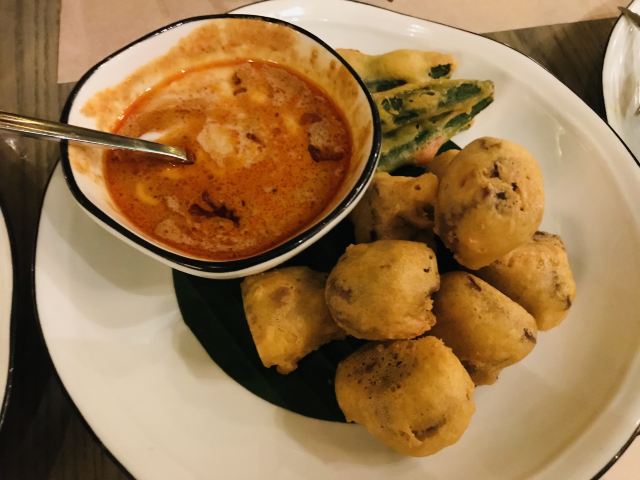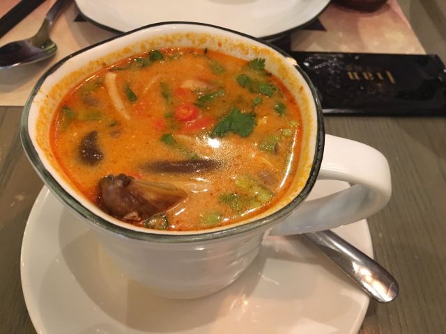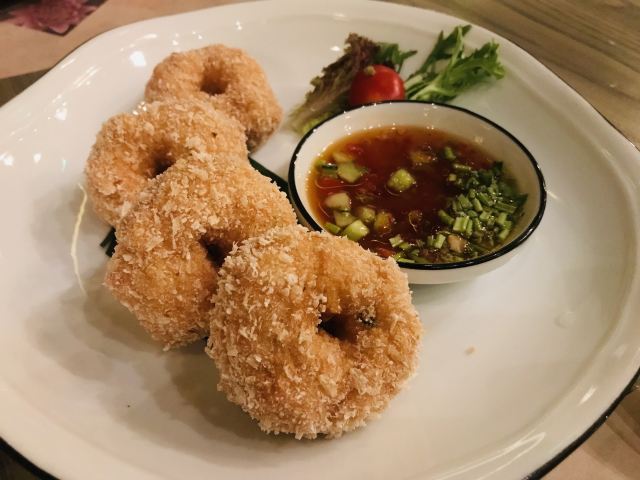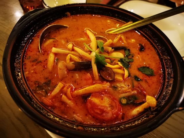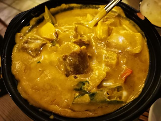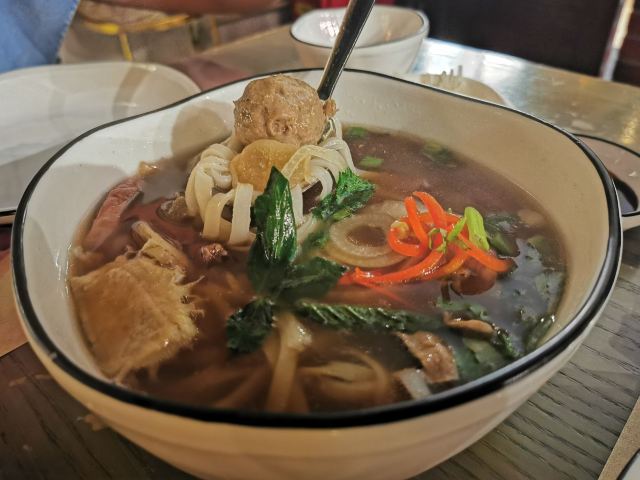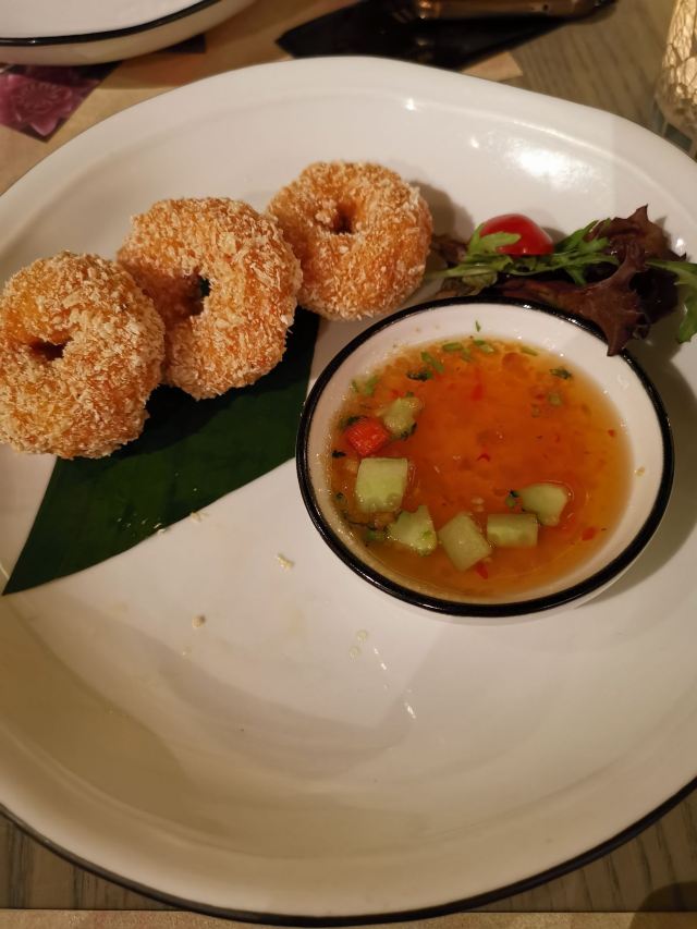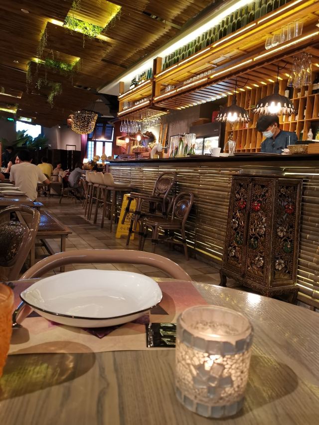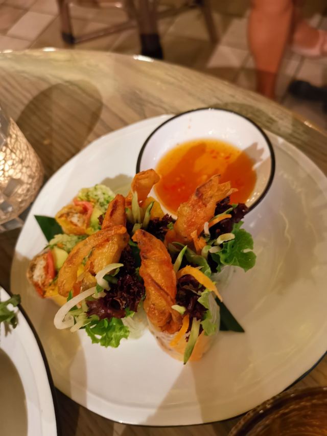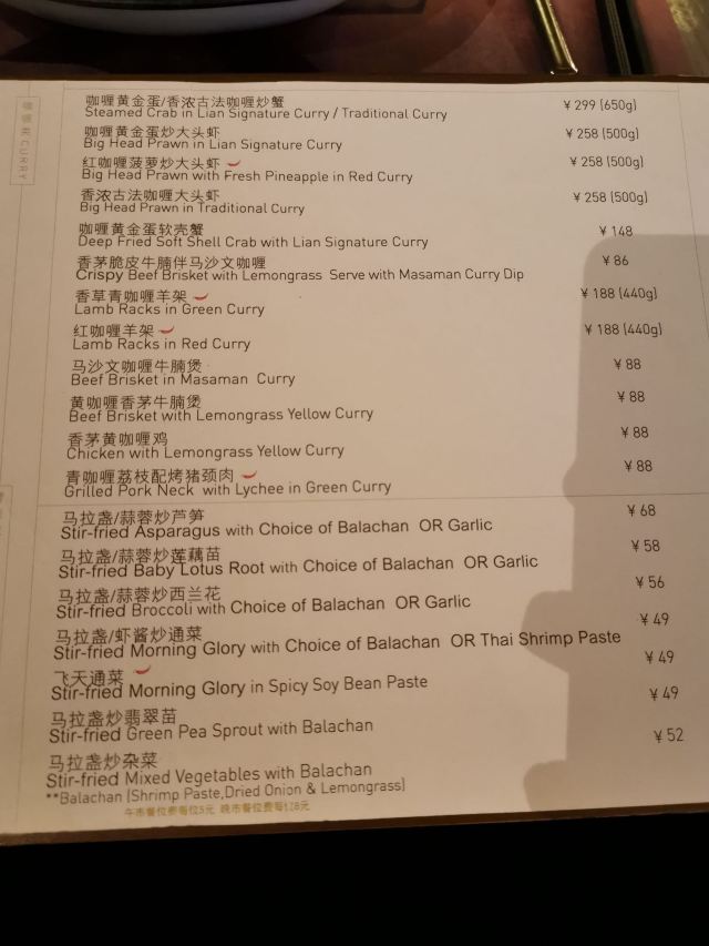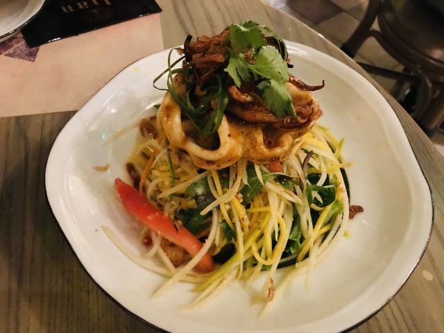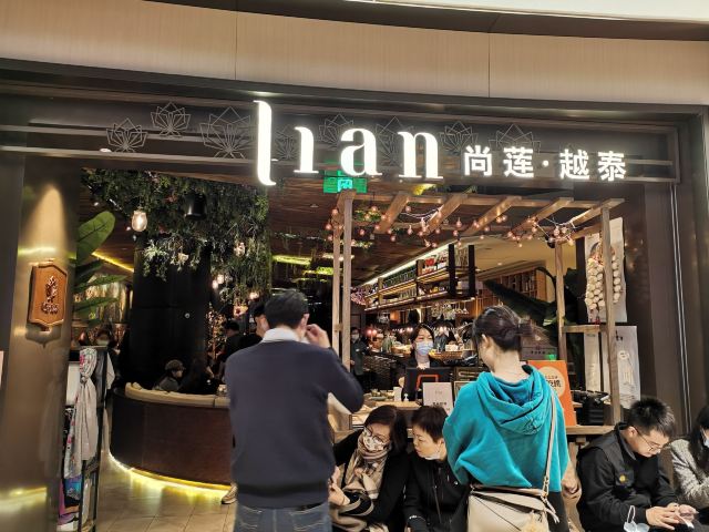侃食魔都美食|值得一尝的越泰料理 👉店铺名:Lian 尚莲·越泰料理(兴业太古汇店) 📍地址:上海市静安区南京西路789号兴业太古汇三层L319 🚇交通:地铁2/12/13号线“南京西路站” 🕙营业时间:10:00-22:00 [环境] 墙上佛头绘画很泰国,强烈的异域风情。晚上光线暗,营造的是昏暗的气氛,菜品拍照不太好拍。软座座位低,坐的不舒服。 [服务] 需要餐位费 Wi-Fi手机登录 🌟泰式鱿鱼粒虾饼 76¥ 5/5 虾饼里有香菜!虾肉弹性,厚实,皮微脆,白胡椒粉,香菜味重,不放香菜会更好。配泰式酸辣酱,内有芹菜,黄瓜,甜椒,不辣。 🌟海鲜冬阴功 48¥/人5/5 一人份碗不大,但食材满满。海鲜新鲜,有青口、鱿鱼,扇贝肉最嫩,基围虾开背虾线没有完全剔除;圣母果、蟹菇、口蘑。酸辣可口,主要是酸,微辣。 🌟香茅脆皮牛腩伴马沙文咖喱 82¥ 3.5/5 炸秋葵和炸牛腩,外面裹的那层炸出来的口感比天妇罗外层脆太多。秋葵倒是软绵;牛腩的面粉不厚很脆,牛腩无味,嫩度尚可,有股淡淡的香气。咖喱酱比较稀那种,里面放了椰肉,奶香味十足,还放了沙嗲,里面有微颗粒。 🌟青咖喱荔枝配烤猪颈肉 82¥ 3.5/5 猪颈肉嫩,酱有点甜上面撒花生粒。糖拌黄瓜,花生酱偏甜。 🌟炭烧鱿鱼伴木瓜丝青芒果色拉 78¥ 4/5 虾酱是臭臭的那种,鱿鱼嫩到觉得里面没有熟。番茄、基围虾烤得有点焦、青木瓜丝脆、黄瓜丝、芒果丝和炸洋葱。调汁酸辣,偏咸,还有茴香味。 🌟香芒芋茸黑白糯米 48¥ 3/5 黑糯米和白糯米饭的组合,甜的。当中有芋泥,创意不错。芒果成熟,甜度还行。椰浆甜,香度差了许多。