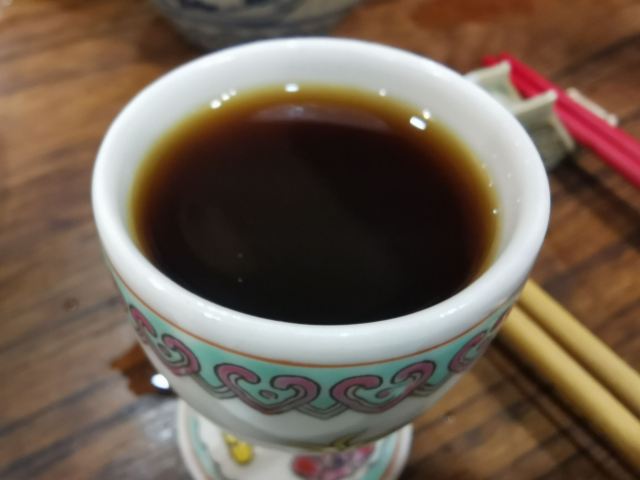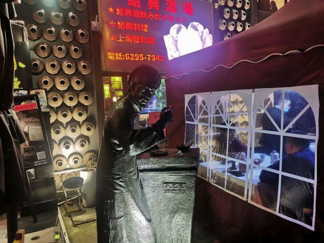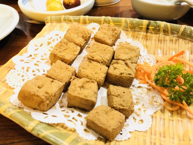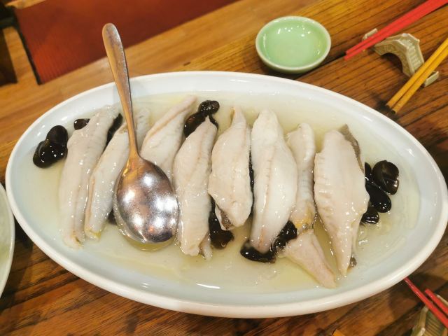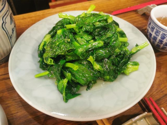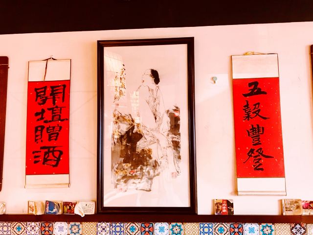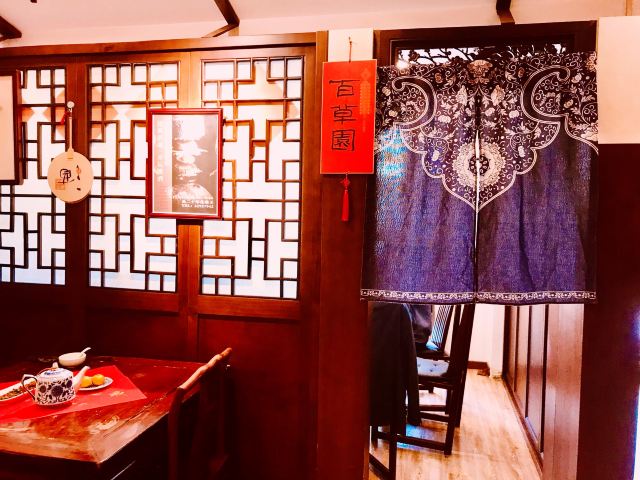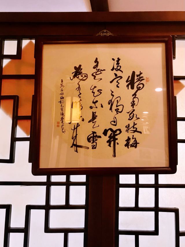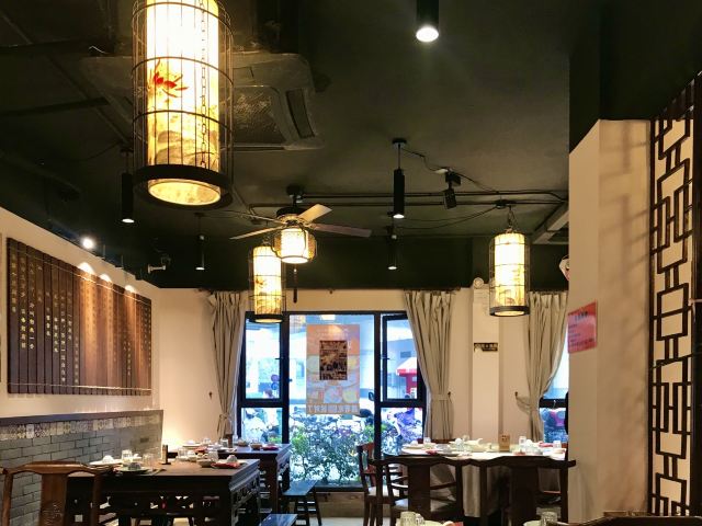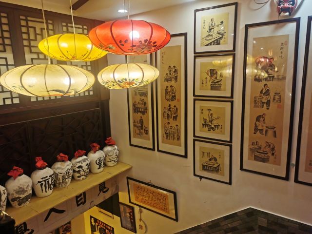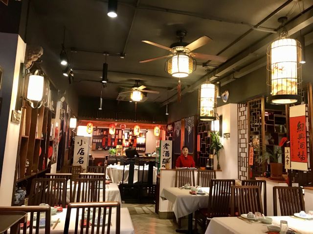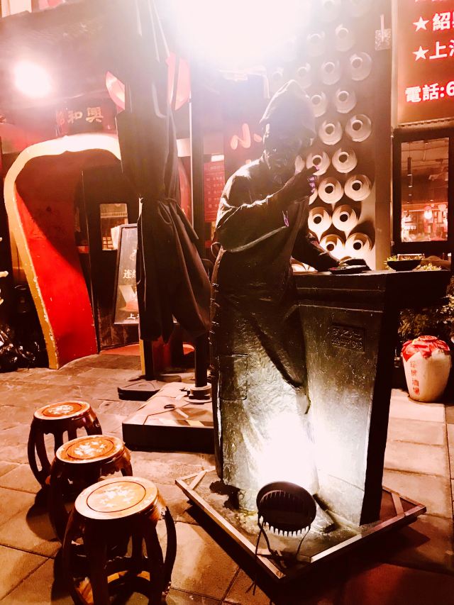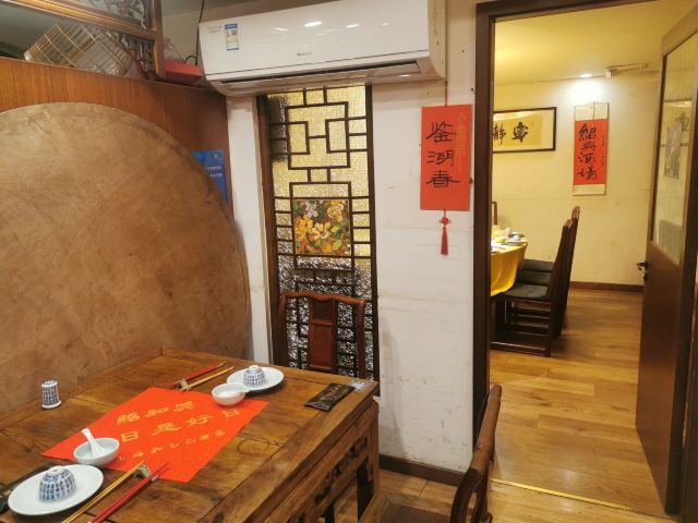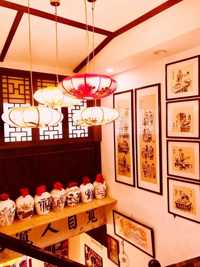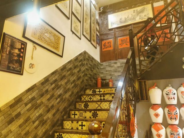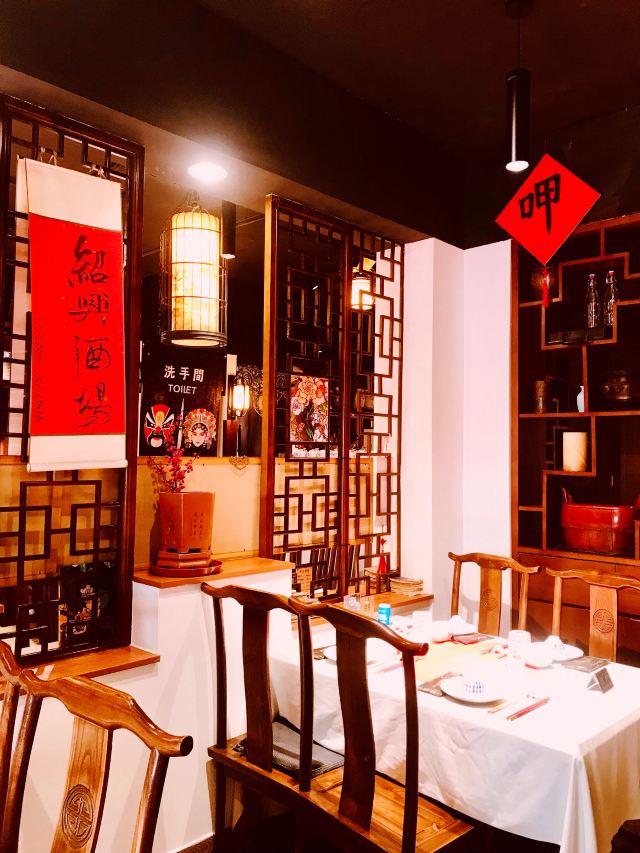 听足音孔乙己酒家是一家地道的绍兴菜馆,门口就是鲁迅笔下绍兴读书人孔乙己的形象——穿着读书人的长衫,却和打工的短衫党一样站着喝酒,倚着方桌,正用手指捉起一粒茴香豆送往嘴中…… 许多人第一次来这里,就是因为喜欢鲁迅的文章,同情鲁迅笔下的小人物。他们是冲着这个店名,冲着这个酒家原汁原味的正宗绍兴菜和绍兴黄酒来的。 定居澳洲的同学回沪,两人就约在浓浓中国风装饰的“孔乙己”共进午餐。同学一来,就被酒家典型的传统装饰风格所惊艳。刚落座,服务员眼中有活,马上上茶,奉上菜单,又先送上时令水果,免得等上菜时心焦,非常温馨。两人胃口有限,点了他家特色双人套餐: 1.先上了茅根马蹄水,常温,水果清香,淡淡的清甜,很开胃,受欢迎; 2.糟卤三拼。三样美味分别是青鱼、香肠和白切猪肉。绍兴乃酒乡,此处糟醉食品当为一绝。上述糟卤三拼,吃下来感觉青鱼块最好吃,香肠次之,白切肉也很不错; 3.太雕鸡翅。“孔乙己”的特色菜,也是当日最好吃的一道菜。端上来时,酒香扑鼻,菜盆下有烛火燃着保温,很好保持了太雕酒(黄酒的一种)的风味。鸡翅做得非常嫩,入味又不咸,还有醉人的酒香,令人食后难忘; 4.清炒豆苗,虽是家常菜,但炒熟又保持生青碧绿还是要有点功底的; 5.蟹粉豆腐,豆腐采用了嫩嫩的绢豆腐,蟹粉是实实在在的蟹肉,量还真是不少,趁热吃真是鲜掉眉毛了[调皮] 6.鸡汤葱油肉皮煲,采用的是本地有名的三林肉皮,Q弹而又不油腻,多孔的海绵状结构,吸满了鲜美的鸡汤,再加上几片葱花提香增色,真是好吃! 7.油爆河虾。听说同学远涉重洋而来,店家特地赠送了这道菜,新鲜的河虾,小而肥美,恰到好处的火候,令虾皮酥脆而虾肉不老,食之口感极佳。在此要感谢老板的慷慨! 店家的特色除了正宗绍兴菜,还有浓浓的中国风装饰。店家在招聘服务员方面也是很有特色的,服务员仪容整洁,服务细心周到,有几位上了年纪说一口绍兴话的服务员特别亲切,比年轻女孩的服务意识更强,脾气也更好。 总之,带海外同学来这里回忆传统,绝对不虚此行。