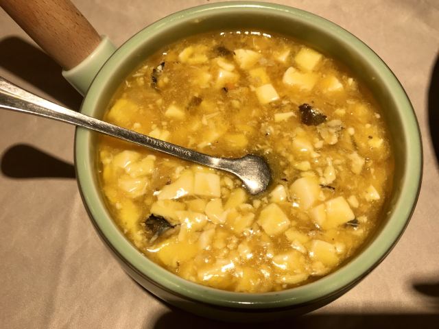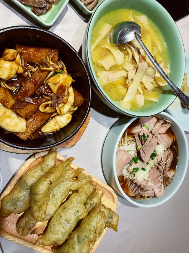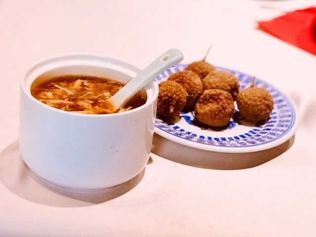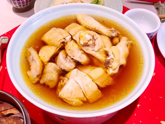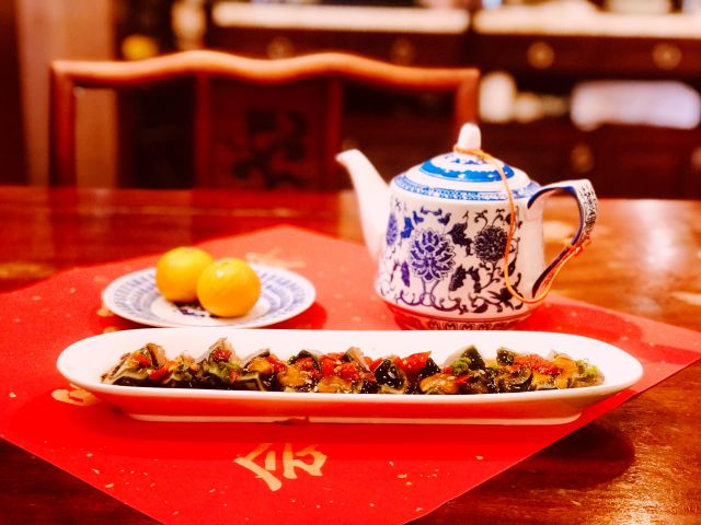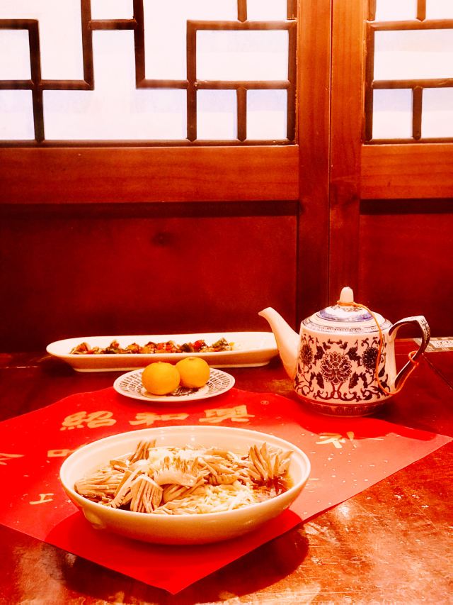 Kong Yi Ji Restaurant (Hongqiao Road)孔乙己酒家,在申城历史蛮长的绍兴菜馆。中国风装饰,绍兴酒文化特色,用餐环境优美,食材丰富新鲜,口味地道,摆盘讲究高颜值,而且质量稳定服务优,是笔者常去的餐馆。 网上购买了他家午市双人套餐,包括凉菜双拼, 热菜金牌太雕鸡(半个)、肉汁笋尖、麻婆豆腐烧九肚鱼、清炒时蔬,还有开胃酸辣汤和饮料茅根马蹄水,主食米饭两碗,才168元,性价比超高!
