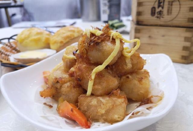参汤虾饺,萝卜糕,豉汁蒸凤爪,高汤虾饺皇,牛肉丸,艇仔粥,鲍鱼烧卖,红烧乳鸽,流沙包,酱皇蒸凤爪,紫菜海鲜卷,干炒牛河,核桃包,参汤虾饺(4只),招牌雪山包,港式片皮鸭,鲜虾春卷,天鹅榴莲酥,叉烧酥,脆皮乳鸽,芝士龙虾伊面,招牌冰皮鸭,酥皮蛋挞