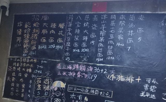 辣肉面加雪菜和毛豆,鲍蛤蛏面,蛤蜊猪肝面,洋山芋榨菜肉丝,葱油拌面,炸猪排,酱爆猪肝,素鸡,素浇,海鲜面,猪肝蛤蜊汤面,大排面,咸菜肉丝,葱烤大排,八宝辣酱浇头,维他奶,大肠面,虎皮蛋,腰花汤面,辣酱油,茄盒,辣肉面