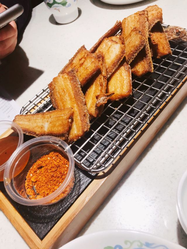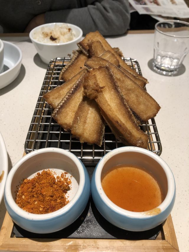 chrisbobo貌似一直蛮红的浙菜店之一,跟外婆,绍东什么的一样走的平价路线。以前生意好像一直挺好的,经常要排队,现在人不多,经过就来试试。「干炸带鱼」,几乎每桌必点,炸的很酥脆,但是油用的不太好,多吃两块就会反胃,而且那个蘸酱的小盒子太让人抓狂了,根本蘸不到。「龙井脆皮茶香肉」,味道不错,稍微偏咸,缺点同样是用料不佳。虾籽阳春面,8元一碗性价比真高,好吃。「酸辣土豆丝」,一点也不辣,没想到是最好吃的一道菜!「荠菜肉春卷」,这个踩雷,又硬又难吃,千万不要点。综上所述,平价菜用料可能有些欠缺也很正常,价格放在那里了,味道么随便吃吃要求不高的人可以,排队等候就绝对没有必要了。