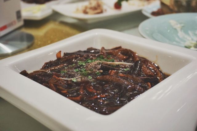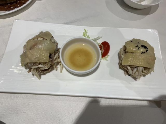 nie_nie作为一个喜欢吃圆台面本帮菜的地道上海小囡, 对于上海味道一直都很有追求, 可能是太过熟悉,那些菜式也很难再有惊艳感, 但这家在传统口味中又有了小小突破, 诶,味道还很不错哟! 冷菜里喜欢本帮熏鱼,酥酥脆脆的, 手撕鸡是被包裹在一起,散开来还是量蛮多的, 老醋海蜇头,蛮厚的,醋味很浓郁,下酒菜… 蟹粉豆皮竹荪,有创新的一道菜, 三者混合在一起意外的融洽,蟹粉料足, 竹荪爽滑,蟹粉口感挺重的,但要趁热吃! 红烧肉烤目鱼,最传统却也最考验, 多少人心目中红烧肉是本帮菜的代表, 一块优秀的红烧肉,一定是肥瘦相间, 肥肉凝结在一起,咬起来还有弹性嚼劲, 瘦肉部分包裹着甜甜的酱汁, 两者一起入口才最完美! 搭配的目鱼更是点睛之笔,这里的红烧肉偏甜, 但是我嗜甜,感觉特别好吃! 清蒸鲥鱼,算是斤头大的,肉质更肥厚, 提前被分好,吃起来方便,鱼鳞抿一抿也很鲜! 扬州干丝也很推荐,比较清淡,但是鲜味萦绕… 还有腌笃鲜,一点都不油腻,简单清爽, 一碗腌笃鲜,喝了眉毛也要掉下来了…