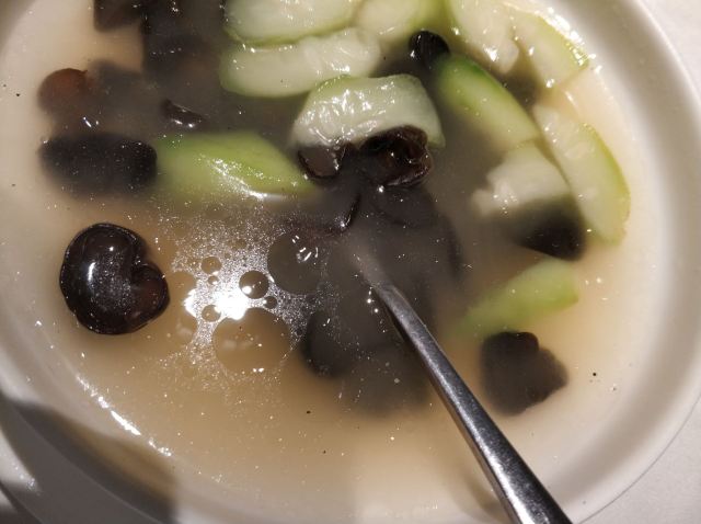 如果不算小黄鱼里的鱼鳞没弄干净、鸡汤丝瓜里木耳没弄清有黑点、胡椒粉放多了太辣有点盖过食材的新鲜度,味道还是可以的; 最后连像五星级擦手纸一样的面巾纸,竟然要收3/块; 参加交通广播的行味活动,抽到100元抵扣券,没想到有很小的一行字满300元才能使用一张100元,赠送诚意不够,其他商家的券没有此规定……