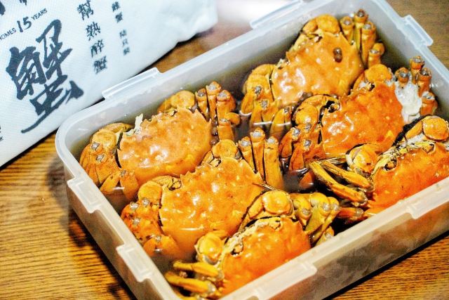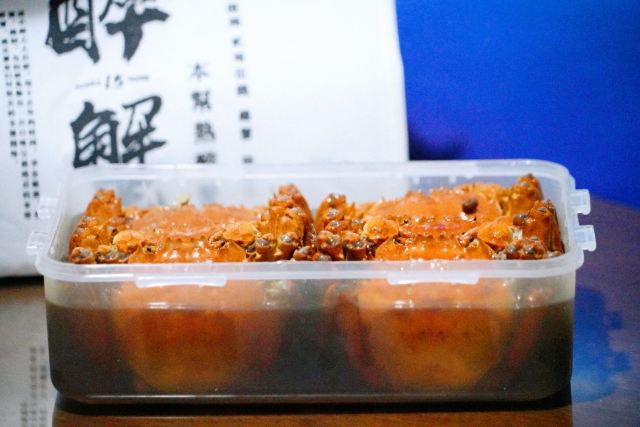 秋趣HOME’S私房菜(淮海西路店) 地址:凯旋路1580-5号新淮海坊二楼 交通:地铁3/4号线虹桥路站6号口出步行5分钟 该店推出的本帮醉蟹很不错,选择淮海西路点去提货,这个新淮海坊还是第一次来,所以找私房菜还转了一圈,其实在二楼南边的顶端,还是容易找。 下午时分到,店家是非营业时间,但总台非常热情,丰富厨房装盒,包装后告诫冷藏事宜。 一个中型乐扣盒,六只雌蟹满满一盒,加上醉料,还很沉的。 本帮醉蟹是上海人的喜爱,拿回家,当晚就忍不住打开尝鲜,闻着浓浓的酒香,剥开蟹壳,眼见满满的蟹黄,迫不及待先尝为快。 果然他家的醉蟹有其特色,醉料略甜,入口鲜美,赞了!