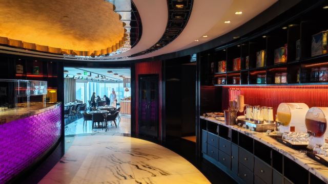 隐藏在金茂大厦54层的自助餐厅,你可以在这里一边欣赏浦江两岸华丽的风景,一边品尝世界各地的美食。餐厅中心是开放式厨房,厨房四周围绕着各个吧台,提供的菜品安全又放心。除了各式海鲜、烤羊排等自助菜品,你也可以单点一杯咖啡、一份甜品,享受一个宁静的午后。