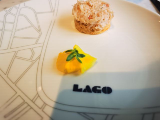 LAGO BY MGM为了携程的口碑勋章,特意购买了这家携程套餐来体验,环境和服务都没得说,苏州河,黄浦江,陆家嘴,尽收眼底,露台尽览美景。套餐本身有汤和沙拉,有烤扇贝,主菜是牛排(非常小)和鳕鱼(味道特别好),有一份焗饭(味道一般),后来加了一道大份海鲜面(味道棒)和半打生蚝(口味略腥),味道中上乘,价格主要还是环境构成。