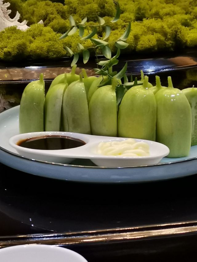 老上海熏鱼,黑椒牛肉粒,烧汁培根茄子,羊肉煲,四喜烧味拼盘,菩提素叠,鲜榨鲜橙芒果汁,五香脆皮鸭,椒香养容蹄,珍菇藤椒煮美蛙,水晶脆皮咸鸡,原浆手剥河虾仁,福禄千岛野生大鱼头,介味鲍螺片,私房生态萝卜,白灼草虾,三文鱼刺身拼盘,福泉虾饺皇,激情沸腾笋壳鱼,脆皮咸鸡,陈酿花雕清远鸡,滋补羊肉煲,金枕榴莲酥,绅士浸膏蟹,坛香一品红烧肉,上海熏鱼