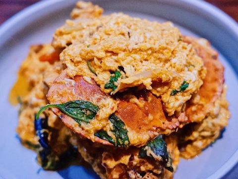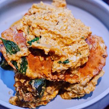 吃饭就别叫我了🌶️招牌桥底辣蟹🦀精挑细选越南进口大肉蟹或澳洲蟹,每只1.4斤~6斤不等,绝对是蟹痴的必食之选。不仅辣度可以根据自身喜好调节,还有豉椒和姜葱炒蟹两种烧法~ 价位💰[小]398元➡️[中]498元➡️[大]698元➡️[特大]898元➡️[蟹皇]时价 辣度细分为五❻档🌶️不辣➡️微辣➡️小辣➡️中辣➡️大辣➡️特辣 选用饱满肉蟹洗净后刷上薄薄一层生粉以保住蟹肉的原汁原味,佐以姜葱、豆豉、辣椒丁、豆瓣酱等香料爆炒,加之灵魂配料炸蒜蓉打造层次分明的吮指美味。经由高温油炸至外皮金黄酥脆,每一丝蟹肉都饱含了蒜香、豆豉和辣味且达到口味平衡,蟹肉丰腴紧实鲜中带辣,如白玉丝纤缕毕现。通常498元的中蟹两人分享绰绰有余,最重要的是有钳任性令你意犹未尽。