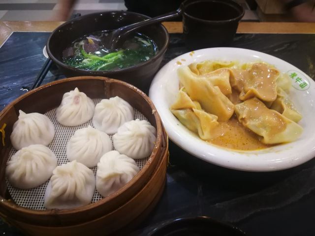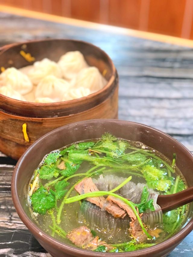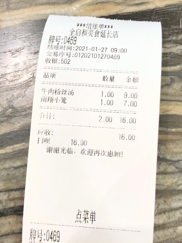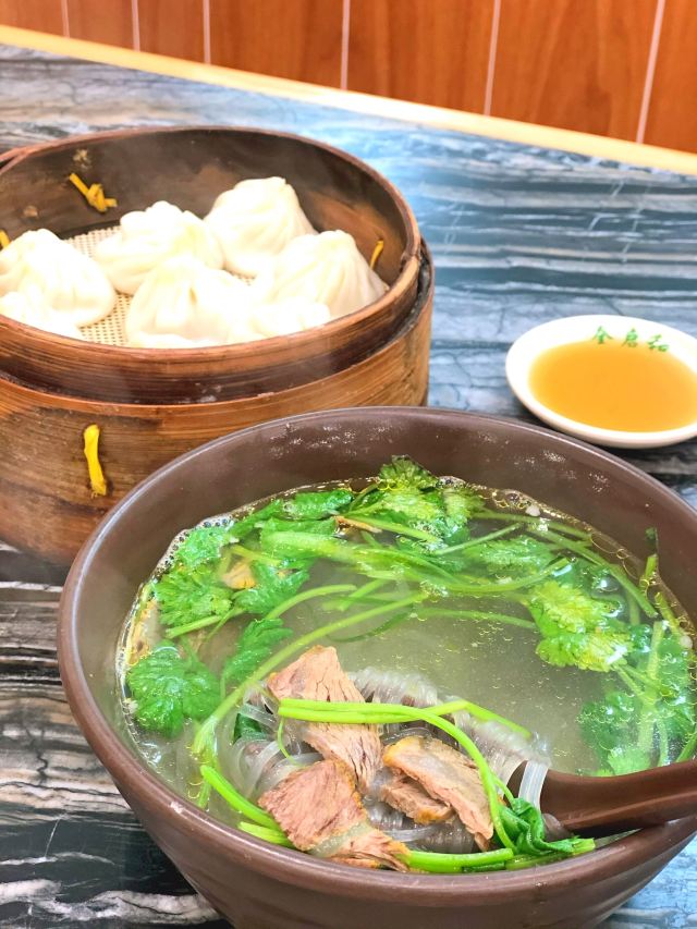 fly_me_to_the_moon入座后把收银员给的纸交给店员即可,会送上桌的,很便捷。 牛肉粉丝汤 一碗才9元,汤很鲜美,喝完嘴巴不干,粉丝顺滑可口,牛肉多多,营养丰富。 南翔小笼 一份7块钱,味道还不错,皮稍微厚了点,肉很新鲜,对得起这个价位哦~ 一共才消费16元!也太划算了吧!吃得好饱好满足!最主要非常适合上海人的口味嘻嘻~ 本来想多坐一会儿休息下的,但是店里的熊孩子不停拉椅子,头痛欲裂!门口打车还挺容易的~