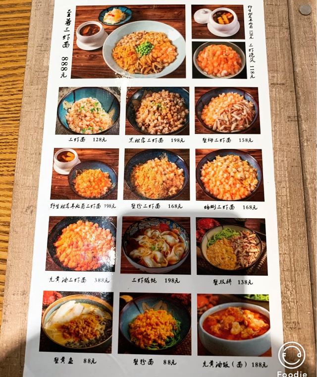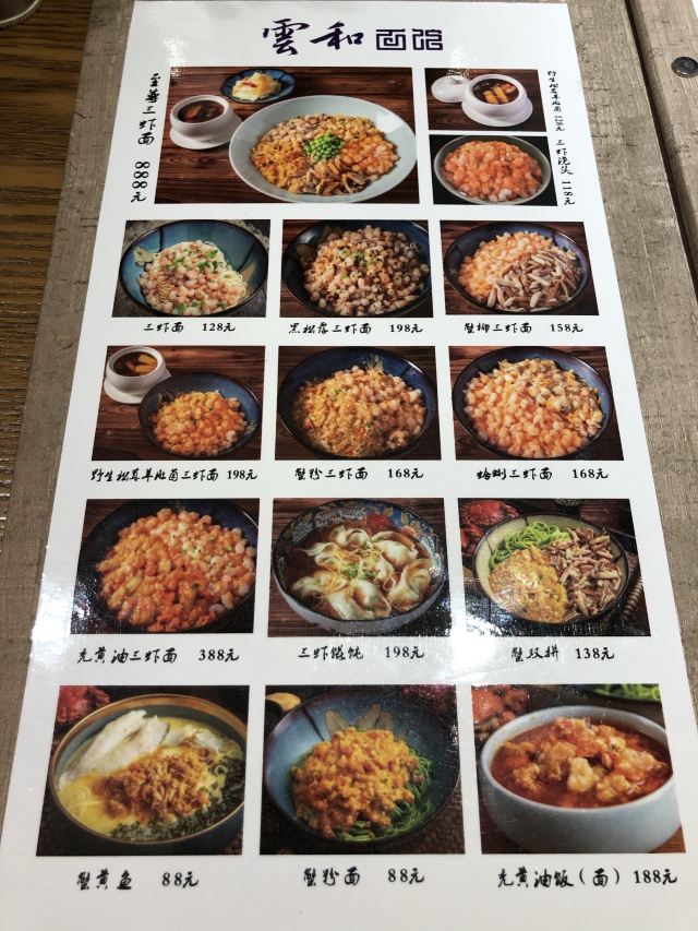 蟹粉捞面,黑松露虾仁面,黄鱼煨面,云和炸猪排,蛤蜊蛏子拌面,酱爆猪肝,糖醋小排,酒香草头,红豆双皮奶,虾爆鳝背面,蟹粉虾仁面,刀鱼面,哆唻咪,红烧鮰鱼,炼奶龟苓膏,响油鳝湖,蟹粉银皮,红烩牛肉面,三虾面,蟹粉三虾面,清炒豆苗,爆鱼,溏心蛋,麻酱腰片,金牌清烟熏蛋,蟹柳三虾面,炸猪排