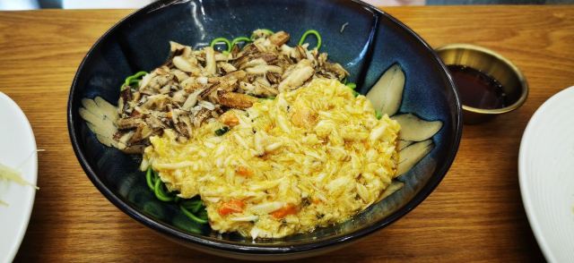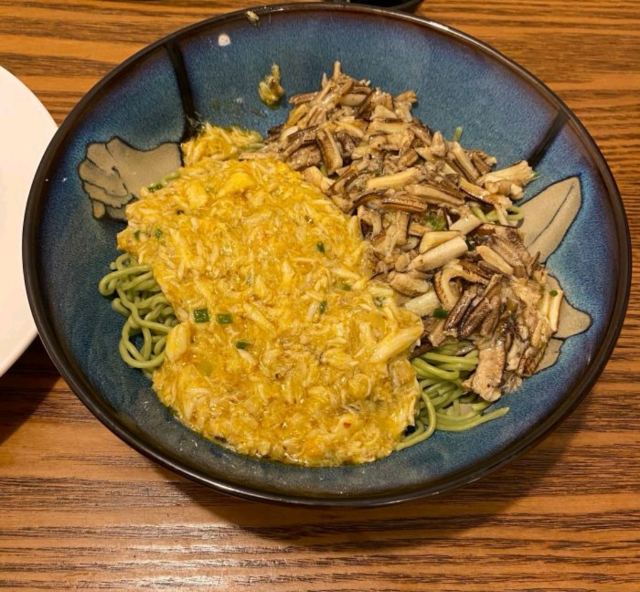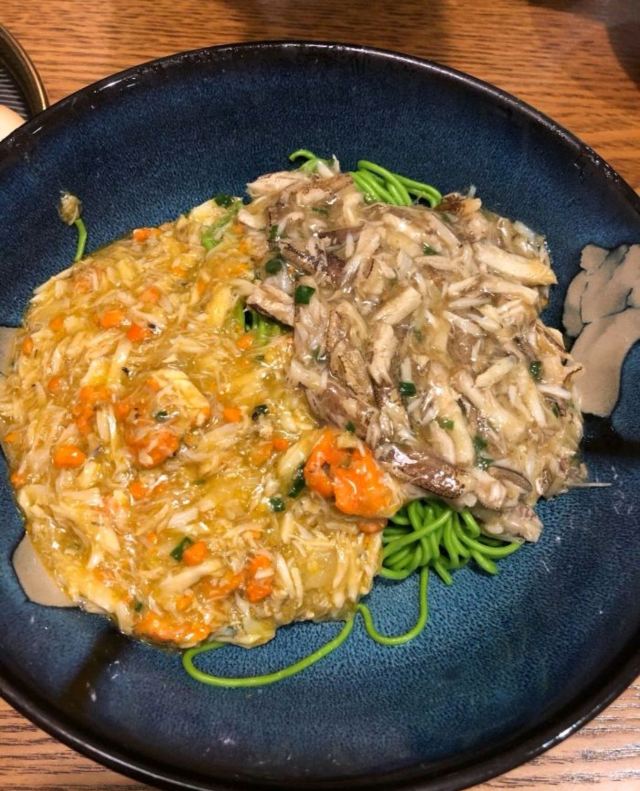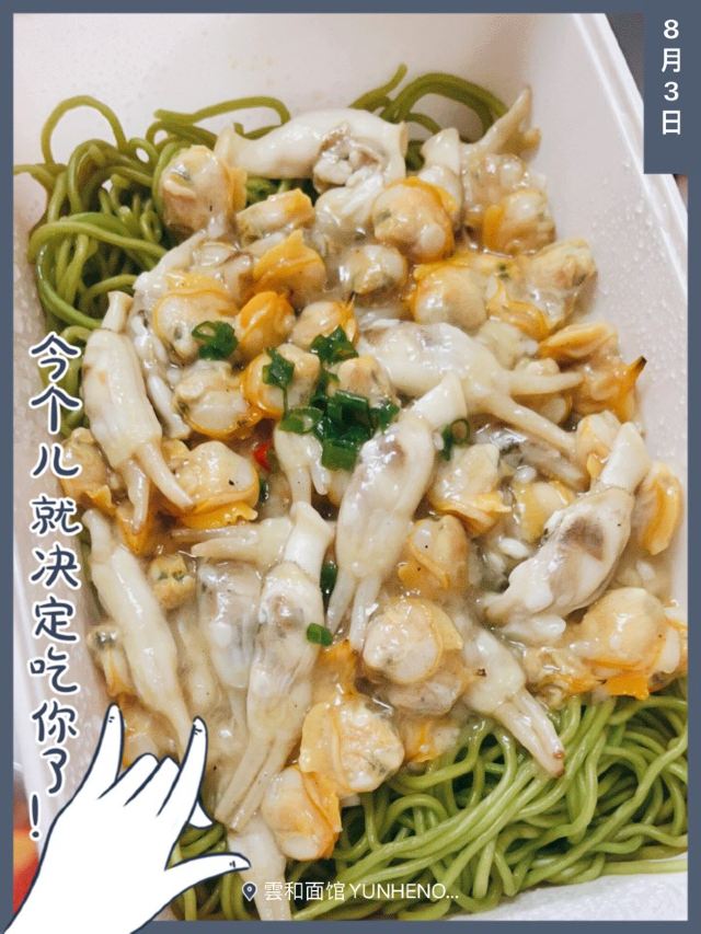 小雪Snow酱云和面馆,深夜一碗面♚ 这可能是魔都最好吃的蟹粉面ᝰ 10号线交通大学地铁站步行4分钟 小雪爱吃蟹粉,一到这样的季节就忍不住想找几家蟹粉店吃,竟然发现了这家宝藏店‼️ 装修一般,可以说是没有,店也比较小而拥挤,服务员还是满积极的,态度好,不过当看到一旁阿姨在现拆蟹粉,这些都不重要了!好吃才是王道!! 秃黄油捞饭 最爱的一份,好吃到不想说话,只想长大嘴往里划,蟹黄蟹膏的极致做法堪称秃黄油,一碗白饭的每一粒米都包裹了蟹黄,蟹膏蟹黄在唇齿之间滑动,仿佛是舌尖味蕾上的华丽舞蹈,如此喷香的蟹黄盛宴,让人无法抗拒! 蟹粉拌面 绿色的菠菜手工面很有特色,色泽一下子就吸引了眼球,面条软硬适中,蟹粉新鲜,没有腥味,金光灿灿,油润浓香,满嘴都是蟹肉香气,感受鲜味的暴击!一碗下肚,空盘就是对食物的最好表白❤ 蟹无敌 当季限定蟹无敌,面如其名,天下无敌,1188也许是魔都最贵的一碗面吧,充满贵族气息的仪式感,一碗蟹无敌胜千金➰ 云集了蟹粉、蟹黄、蟹柳、蟹膏、手剥凤尾虾、甜豆、熟醉蟹以及鱼子酱,稍稍搅拌一下,各种食材都依附在柔顺的面条上,每一口吃起来都过瘾这可能是魔都最好吃的一碗蟹粉面〰️em……你想不想来一碗⁉️ 小雪探店小尾巴 喜欢云和,遇到这样用心做面的店太幸运,预祝店家保持初心,生意越来越好