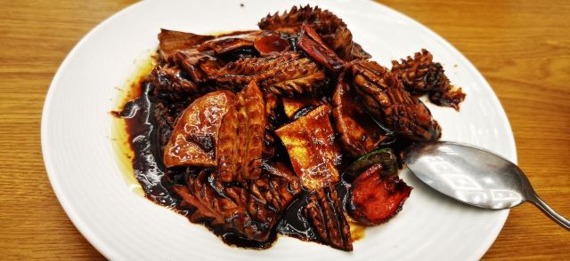 泡泡龙他爸云和面馆,现在名气蛮响的,最早家里领导曾经叫过一两次外卖回家,但外卖到家面条多少会有点粘。店倒不是很远,就在华山路上,淮海西路的北侧,已经算是长宁区了,对马路就是有年头的复旦中学,店面不大,一楼不到十张桌子,也就能坐三十个客人,好像二楼有个包房,店开在显得老旧的华山花苑裙房,不起眼。曾经路过两次,下午2点左右还是客人满满的。这次节假日特意来现场尝尝,10:45到的,我们已经是第三组客人了,11点才营业,到点后服务生才一个个露脸,之前只有老板娘一个人在不停电话抱怨预订包房的客人不来了,准备好的那个帝王蟹怎么办。服务生出现后先安排拼桌,把第一批所有客人都塞在几张小桌后才开始点菜,菜品种选择多,上菜速度也不满,就是不停有客人进门拿号,十几个人挤在小小的门口区域,让人吃也没有多少心思。上了菜,发现筷子没有,营业前竟然没有预先准备好。算了,马马虎虎吃一点,腰花炒得嫩,蟹黄蟹腿更是招牌,口感不错,但并不是别家吃不到的。分量挺足,小家伙后来就失去战斗力了,把大部分腰花打包回家。结账蛮快捷,但发票拿不到,推说发票要第二天才能开,其实一看就明白,整个服务乱糟糟的,一群服务生手忙脚乱手足无措的,能不开发票就尽量不开而已,对了,外卖也从来没拿到过发票。总体感觉,口味挺不错,价格挺贵,几乎没有服务,乱成一团,口味也不是独此一家,老板娘对客人的腔调个人很不喜欢,偶尔上门吃一次体会一下可以了