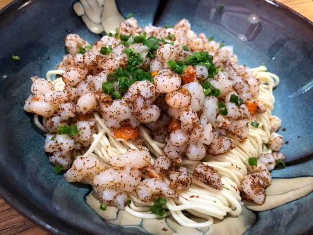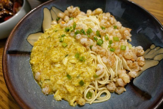 YUNHENOODLE这家网红面馆就在复旦中学的对面,地铁口出来走几步就到,招牌的是三虾面,口味众多,蟹粉、黑松露、野生松茸 羊肚菌、秃黄油、蛤蜊等,看着都想尝试。选择了它家的黑松露三虾面,因为一进门的时候,就看到老板娘在门口亲自处理黑松露,面条一上桌,就让人大有食欲,黑松露的用料足,面条拌一拌,口感不错。野生松茸羊肚菌套餐也是很值得尝试的一款,汤真的鲜美,松茸的成本其实很高,能喝上这么一碗营养的汤,配上三虾面,真心满足!下次还要换个口味尝尝,再也不用大老远跑苏州了!